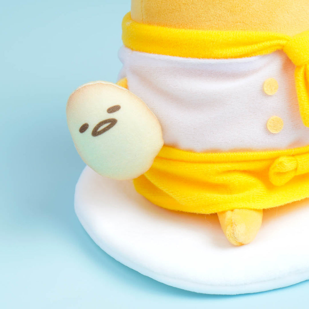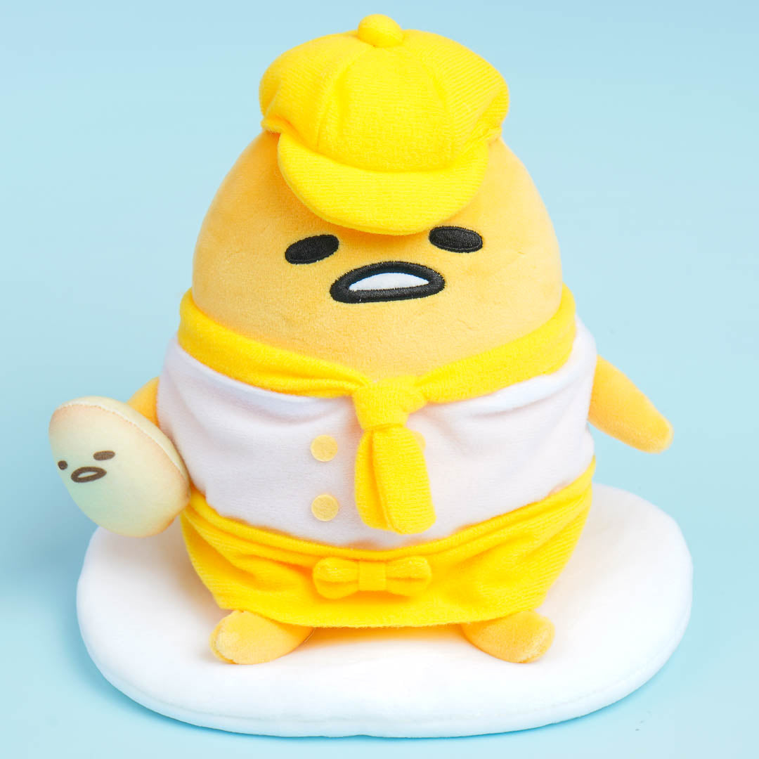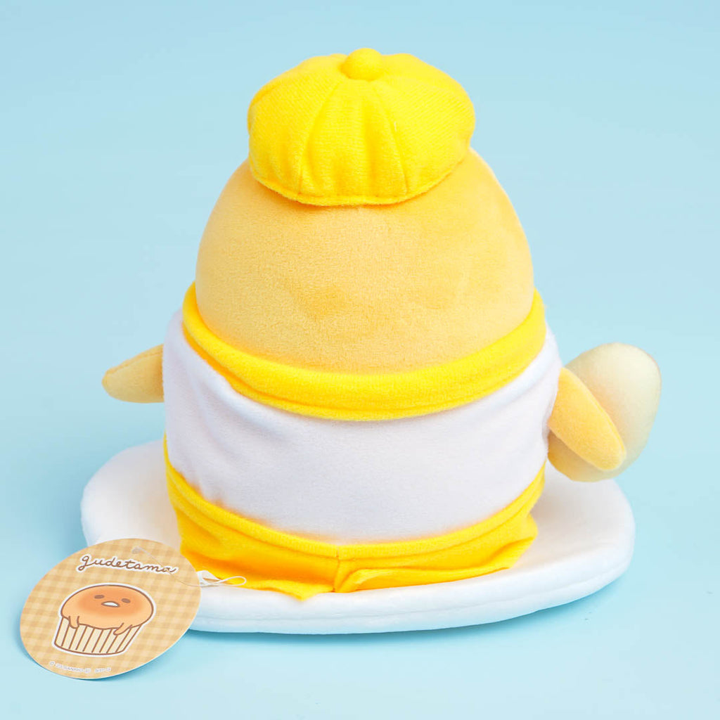 This mini-sized Gudetama plushie works at the Sanrio Bakery. Have fun eating nice pastries together with this cutie! It's the perfect decor for your baking cabinet!