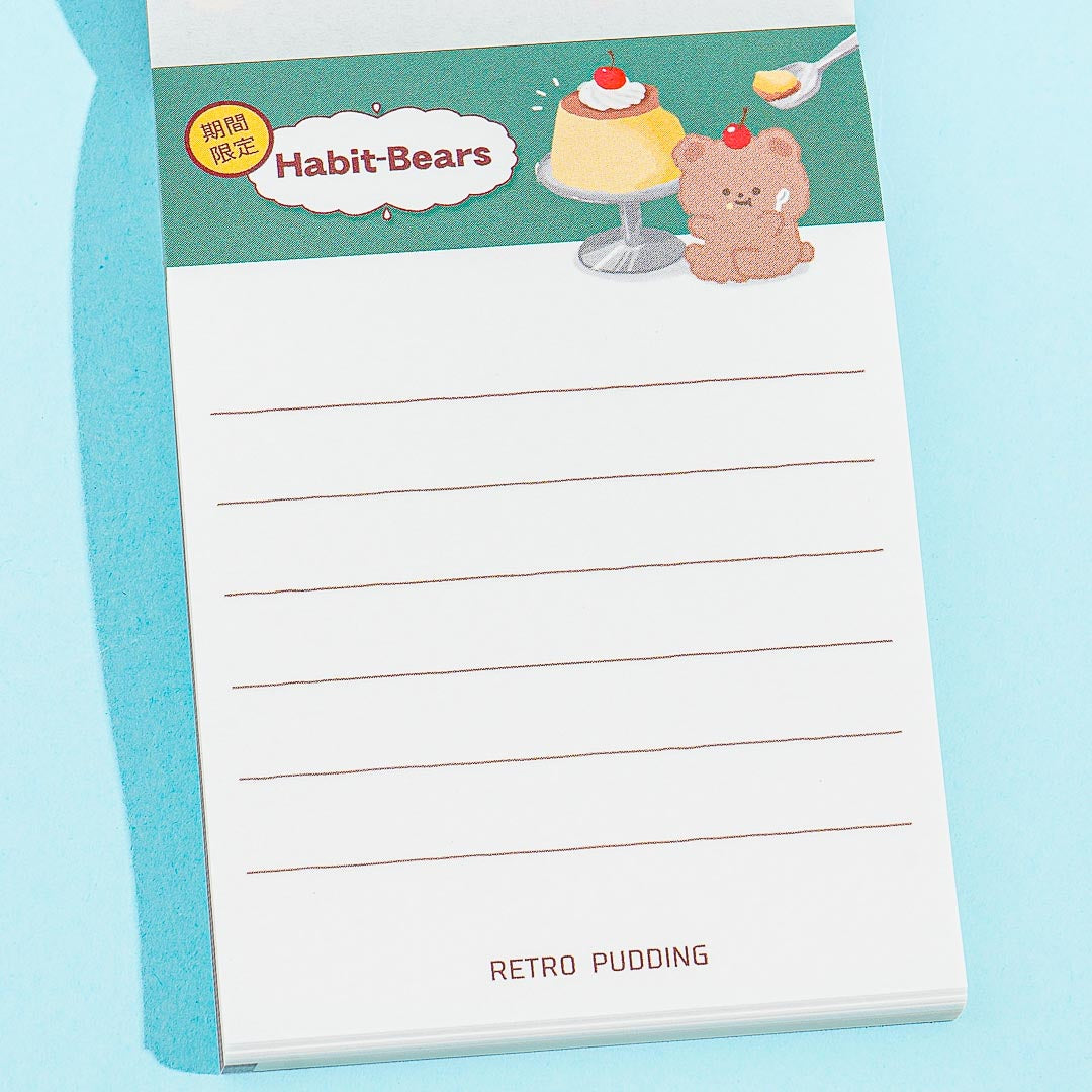 This mini notepad is illustrated with a kawaii bear and pudding! Use it to write down important reminders.