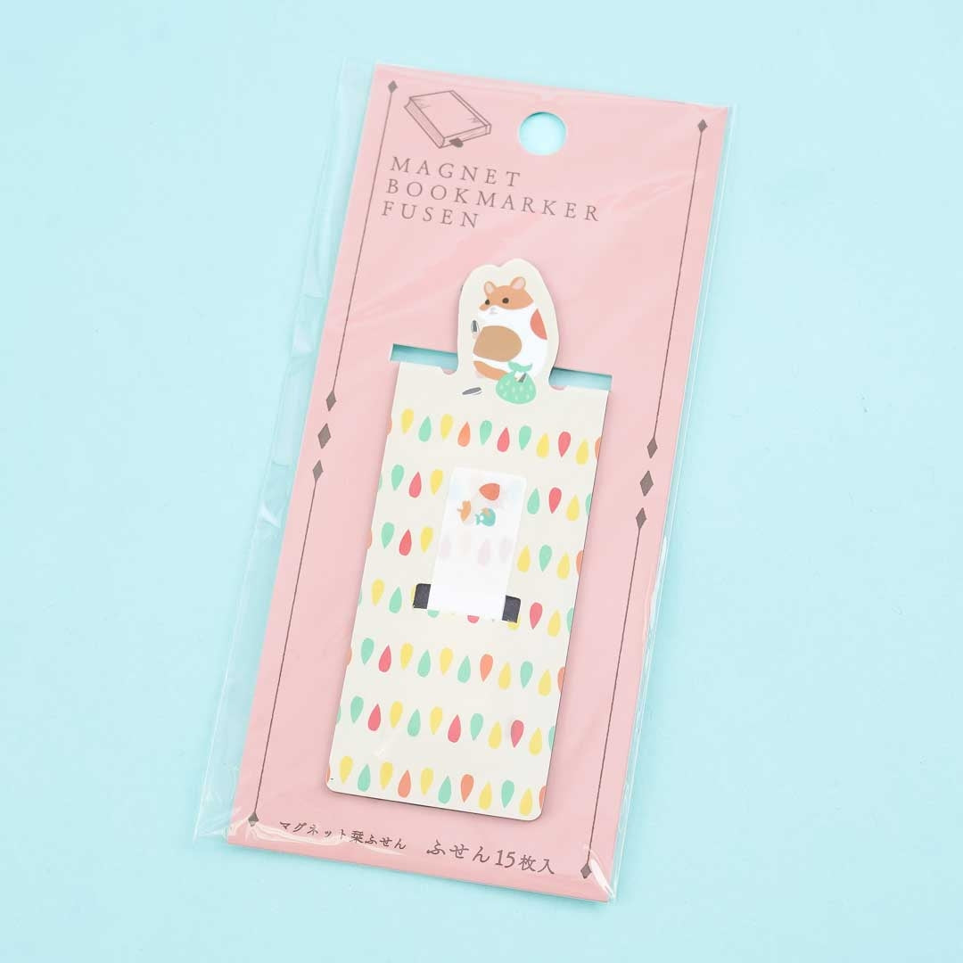 A kawaii magnet bookmark and sticky tabs set featuring small hamster prints
