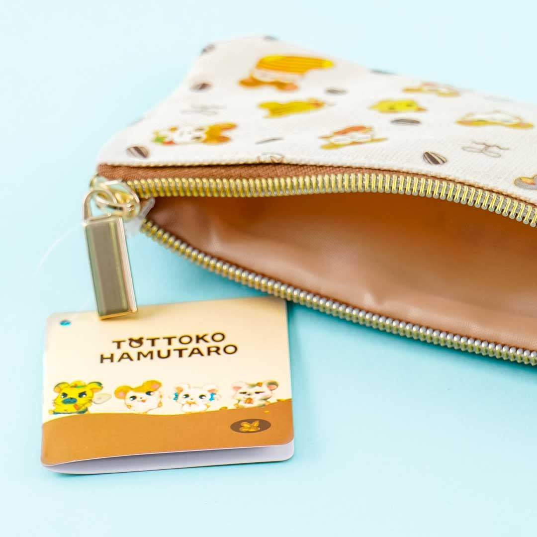 A super kawaii zippered pen case illustrated with Hamtaro characters