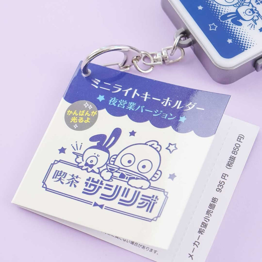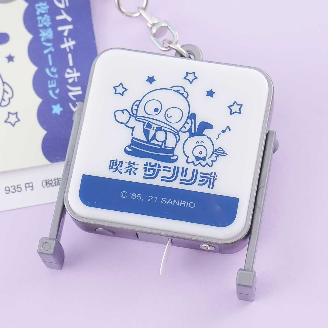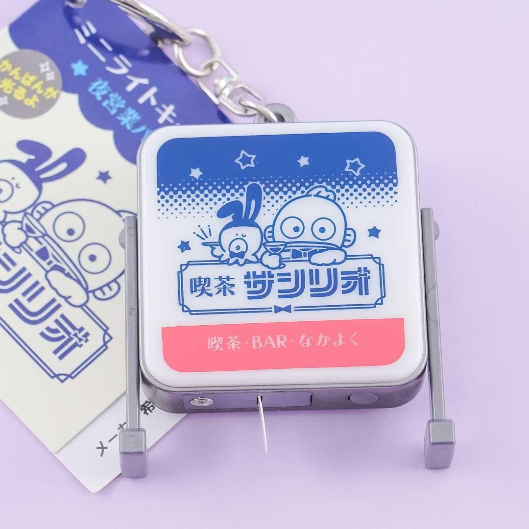 Jazz up your backpack by attaching this kawaii charm that looks like a miniature bar signboard! It features retro-inspired illustrations of Hangyodon and his friend, Sayuri the octopus! The charm also comes with a metal clip and can light up with two LR41 batteries.