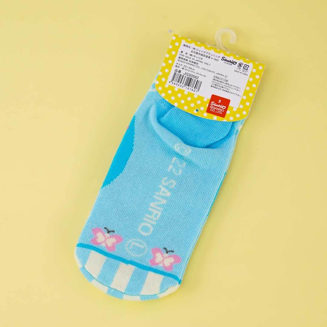 Don't forget to wear this cute pair of socks before heading outdoors. It's decorated with prints of Hangyodon and butterflies! These socks are made with soft cotton so they're nice and comfy to wear!