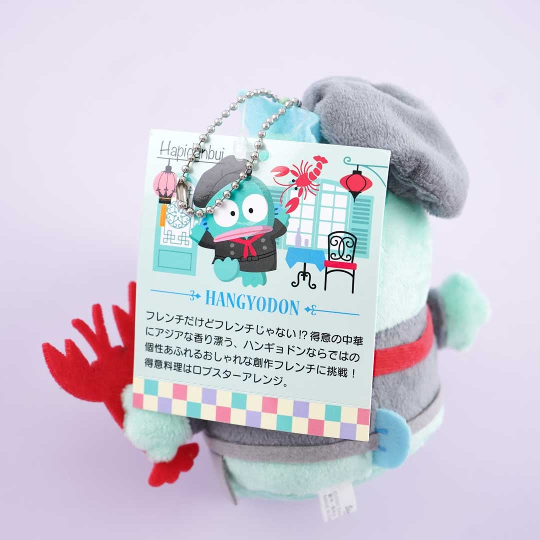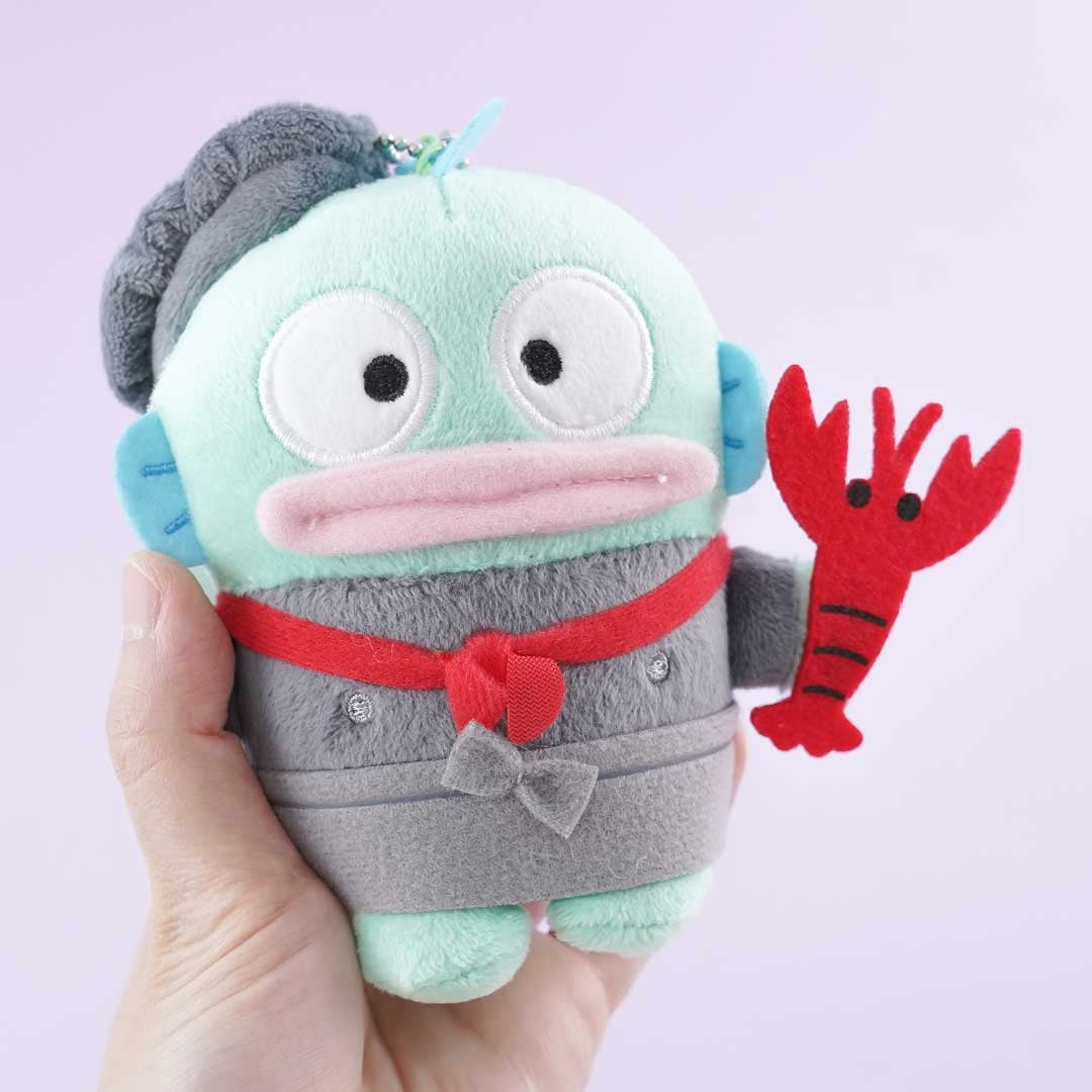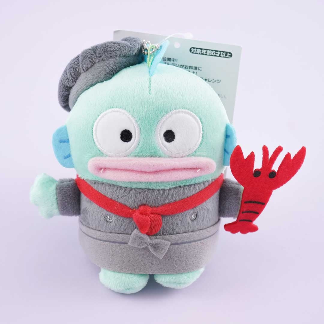 Chef Hangyodon is ready to serve you some tasty-looking lobster. You can attach this medium-sized plushie to your backpack with its ball chain.