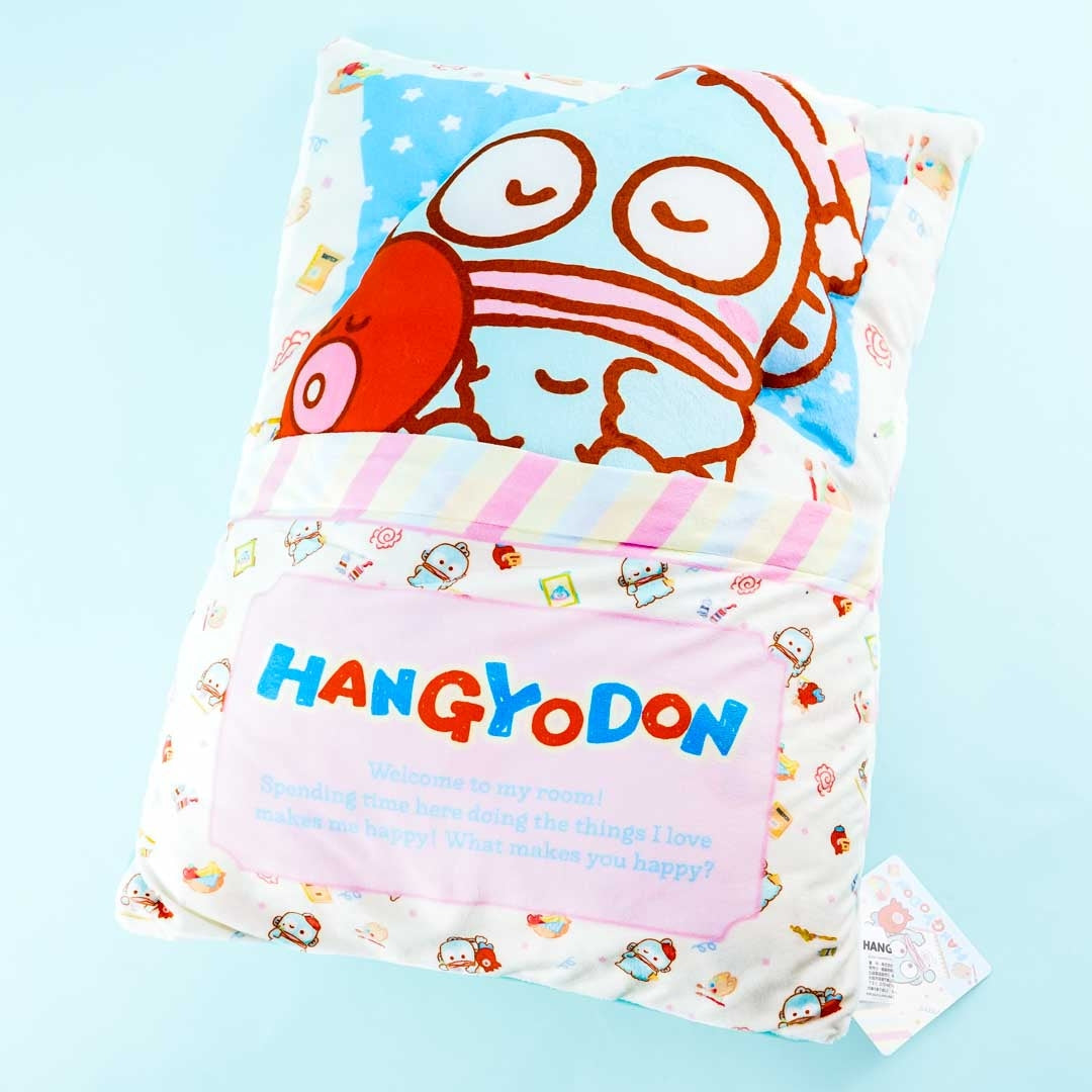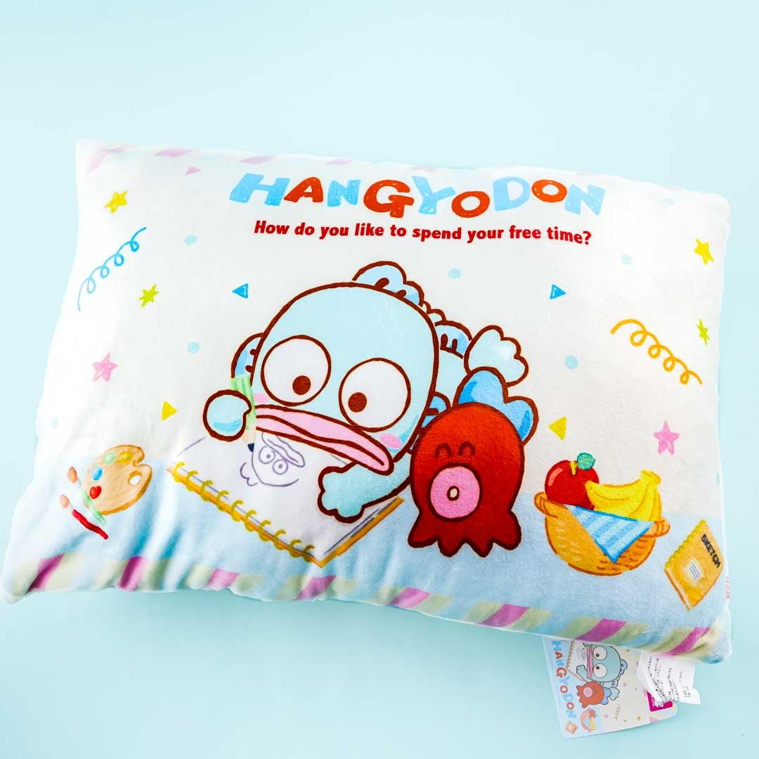 Place this super kawaii pillow on your favorite spot on your bed. It's illustrated with Hangyodon relaxing and sleeping! This pillow has different designs on both sides.