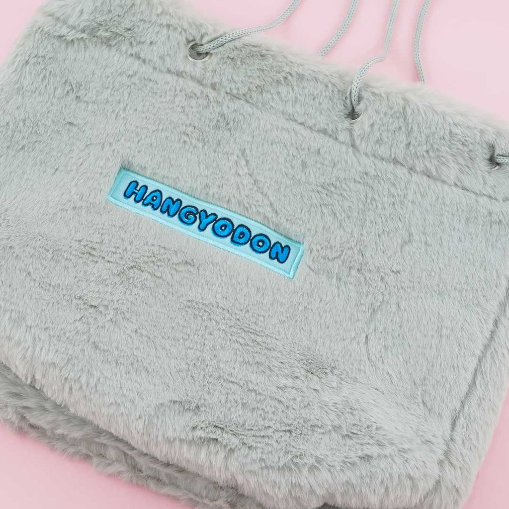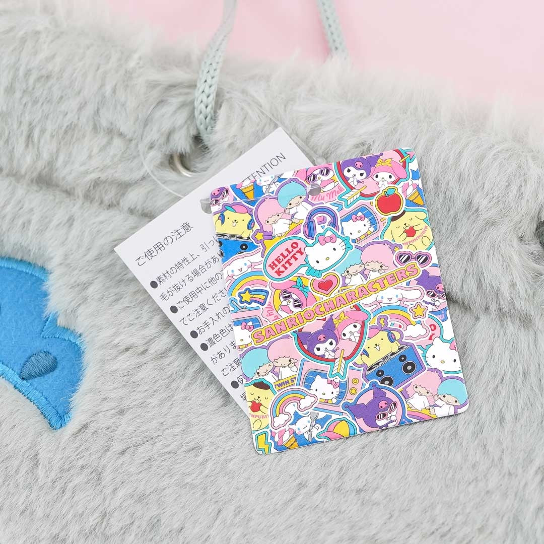 This fuzzy bag features embroidery of the blue fish-like Sanrio creature who loves to make others laugh. It also has a "Hangyodon" embroidered print at the back. Use this kawaii shoulder bag to carry your daily essentials. It comes with string handles that you can easily pull to secure your things.