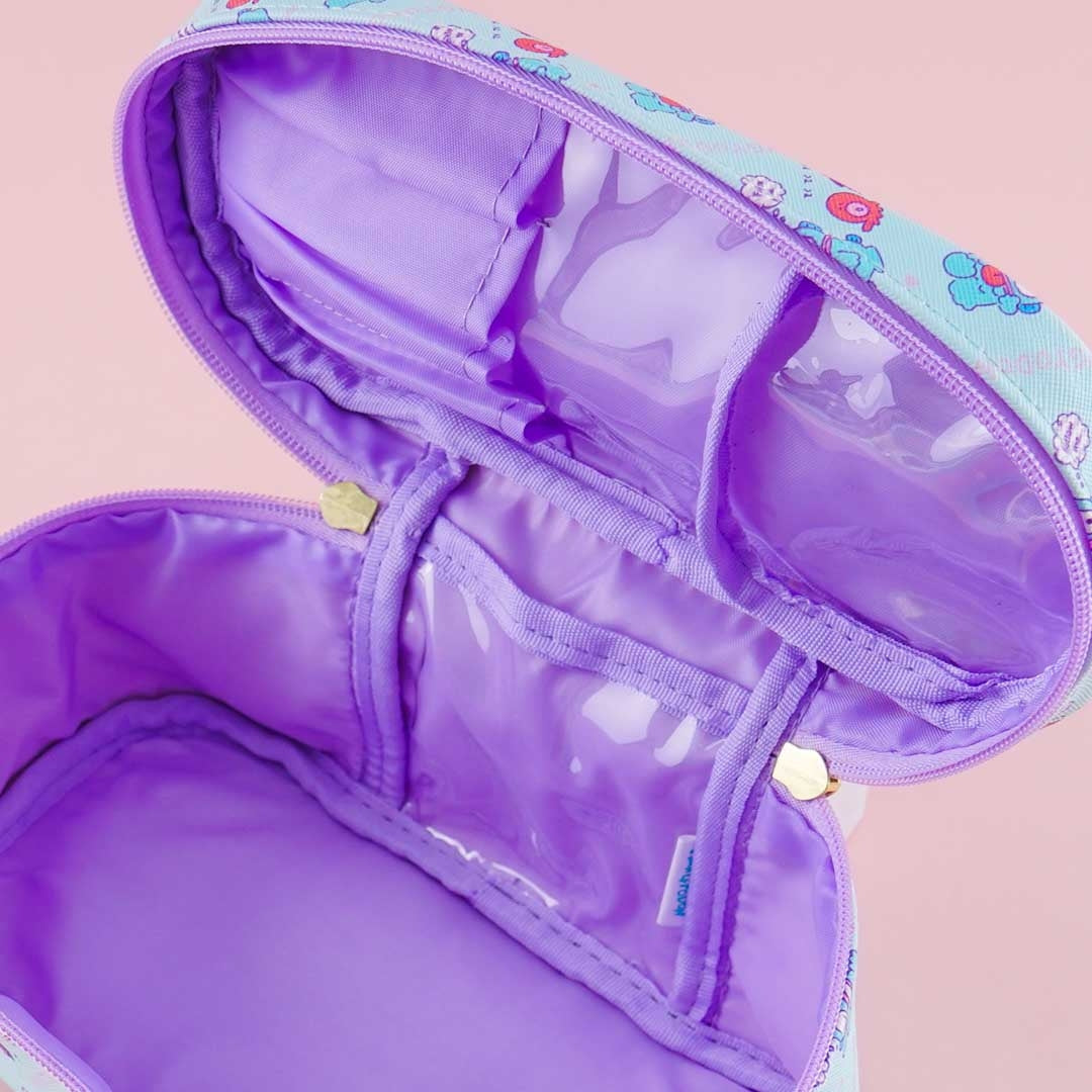 This handy beauty bag has a convenient handle and is made of faux leather! It has prints of Hangyodon and his BFFs Itaro and Sayuri all over and comes with dual zipper closures. You can place your fave makeup products and tools as it has a spacious compartment, an inner pocket, and four slots with dust guards that can hold mascara or brushes.