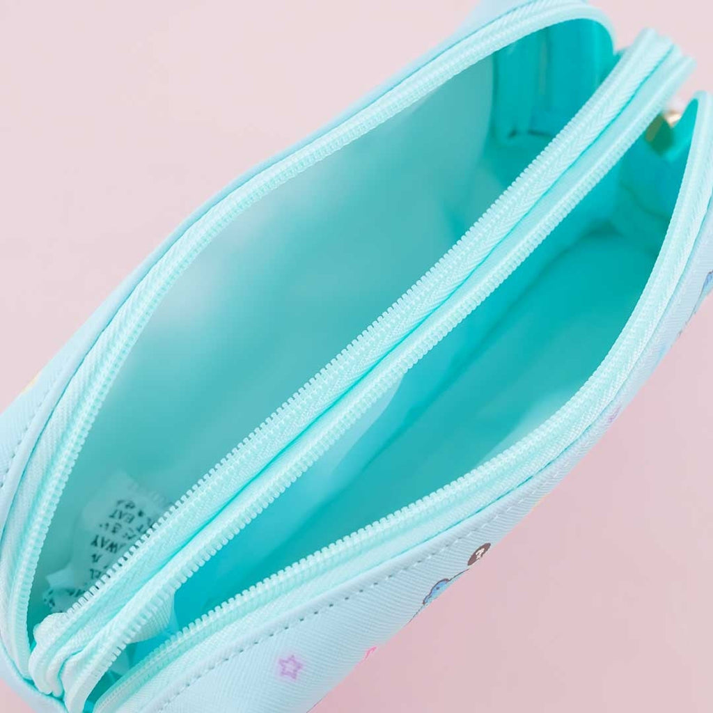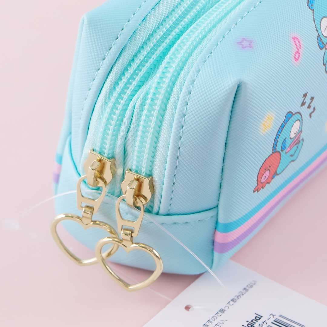 Keep your writing tools organized with this zippered pouch with two compartments. It is illustrated with prints of Hangyodon, Sayuri, and Itaro with musical notes and lots of tiny stars. This super cute case is made of synthetic leather and features two heart-shaped charms.
