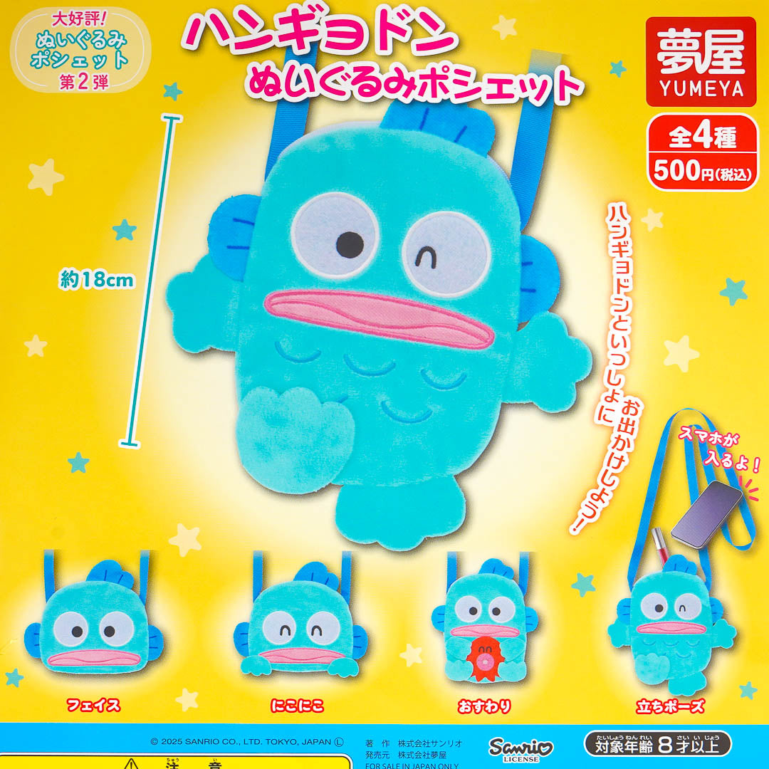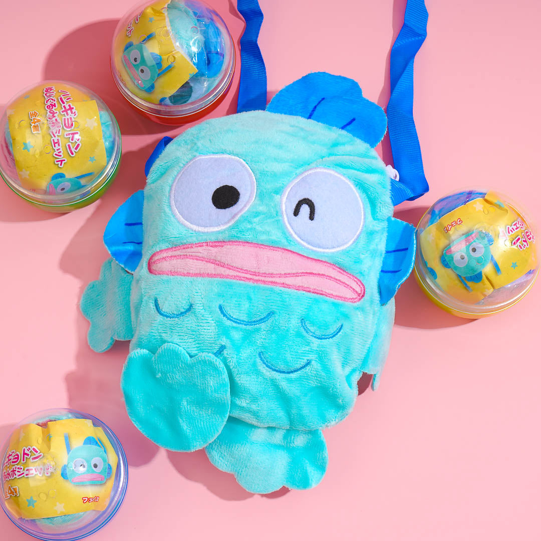 Add a splash of kawaii to your outfit with this cute Hangyodon plush pochette or shoulder bag! Its mini size is perfect for your smartphone and small essentials. This fluffy bag comes in a gachapon capsule and features four different poses of Hangyodon!