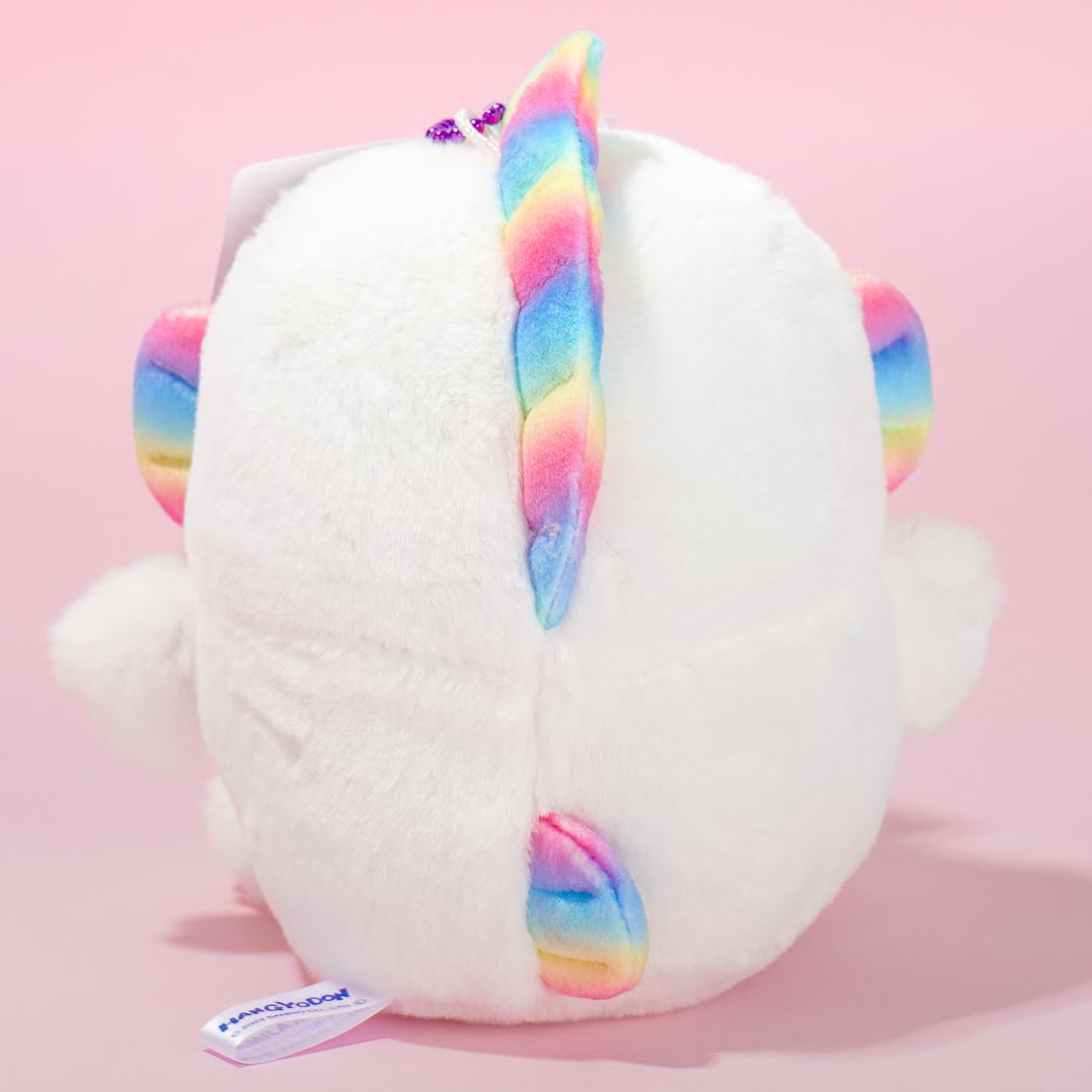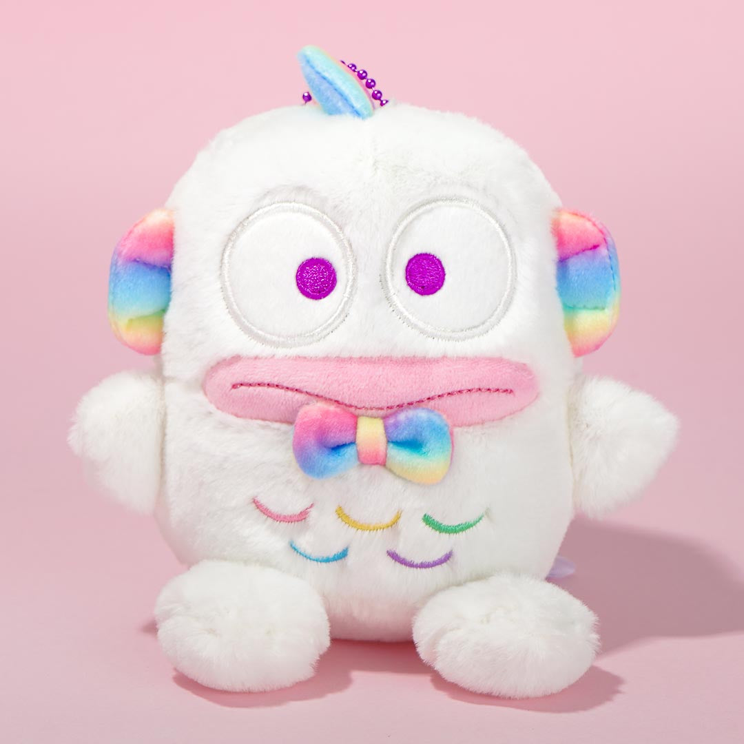 Have fun snuggling with this kawaii white Hangyodon plushie! This medium-sized cutie has bright rainbow-colored flippers and a bow! You can also take it anywhere with you by attaching it to your fave sling bag.