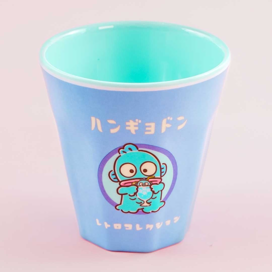 Have a sip of your ramune or soda drink using this kawaii cup made of durable melamine material! It features a cute retro print of Hangyodon and a text that says "Hangyodon Retro Collection" in Japanese.