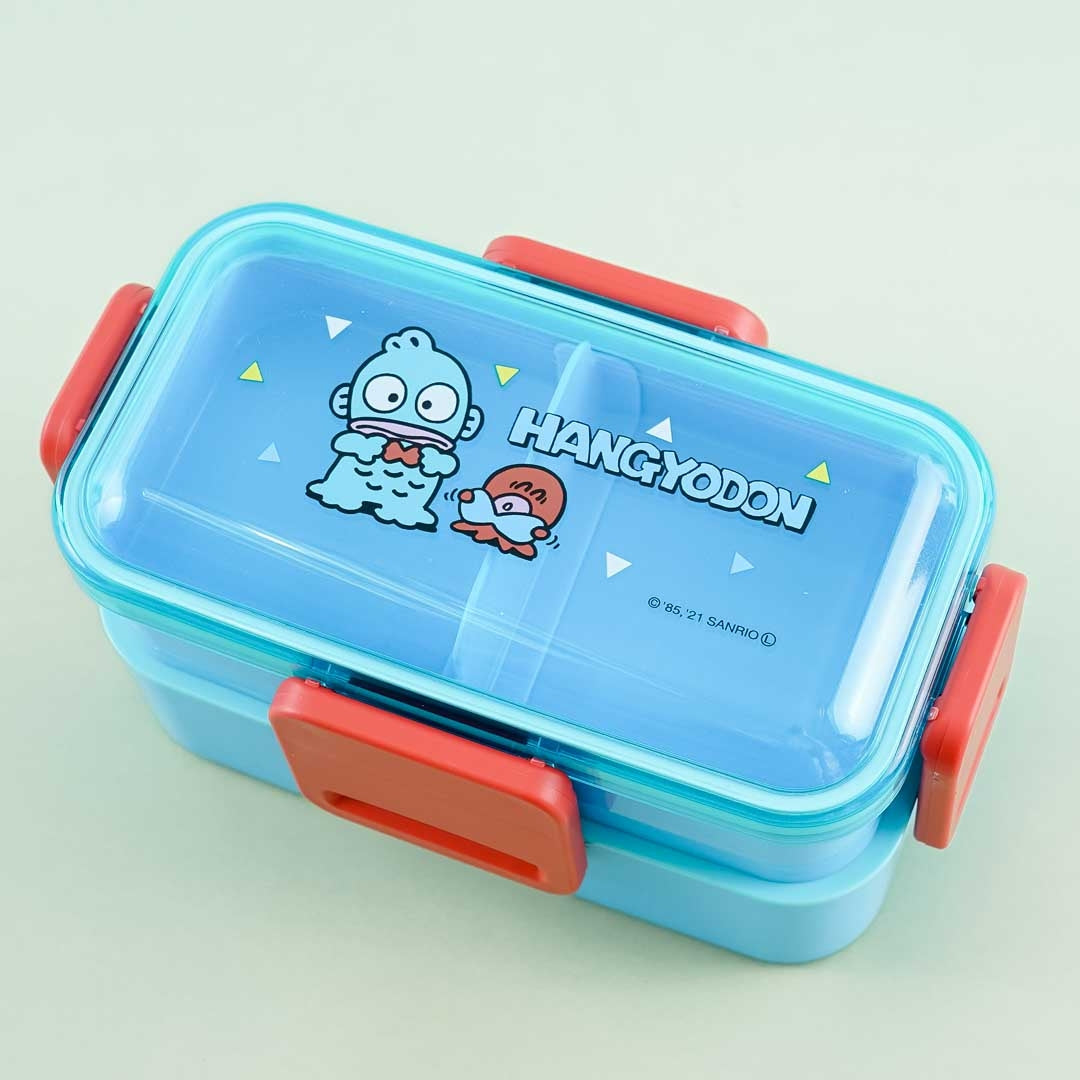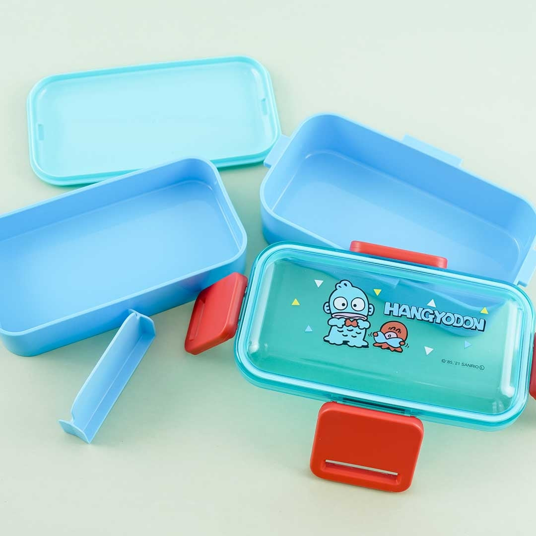Have a blast creating kyarabens inside this super cute bento set featuring a print of Hangyodon and Sayuri the octopus! It has a dome-shaped lid with four snap-locks, a removable partition, and a secondary lid. These stackable bento boxes are made of sturdy material and have silver ions that eliminate bacterial growth. The entire set is dishwasher compatible and can be used in the microwave sans the lid!