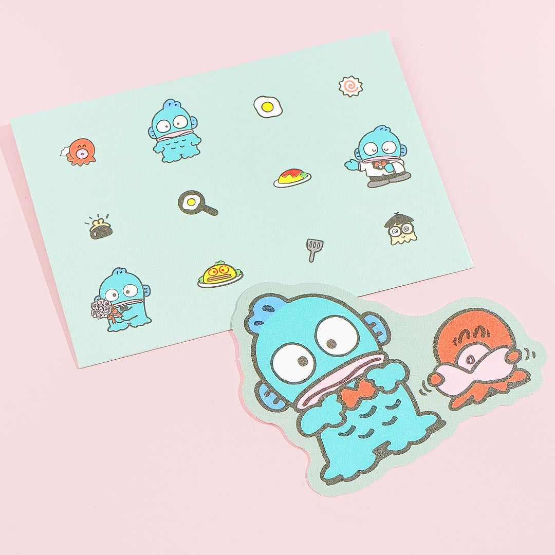 Enjoy swapping handwritten letters with your pals using this super kawaii mini set! It has die-cut sheets and envelopes decorated with vintage prints of Hangyodon and his octopus bestie, Sayuri.