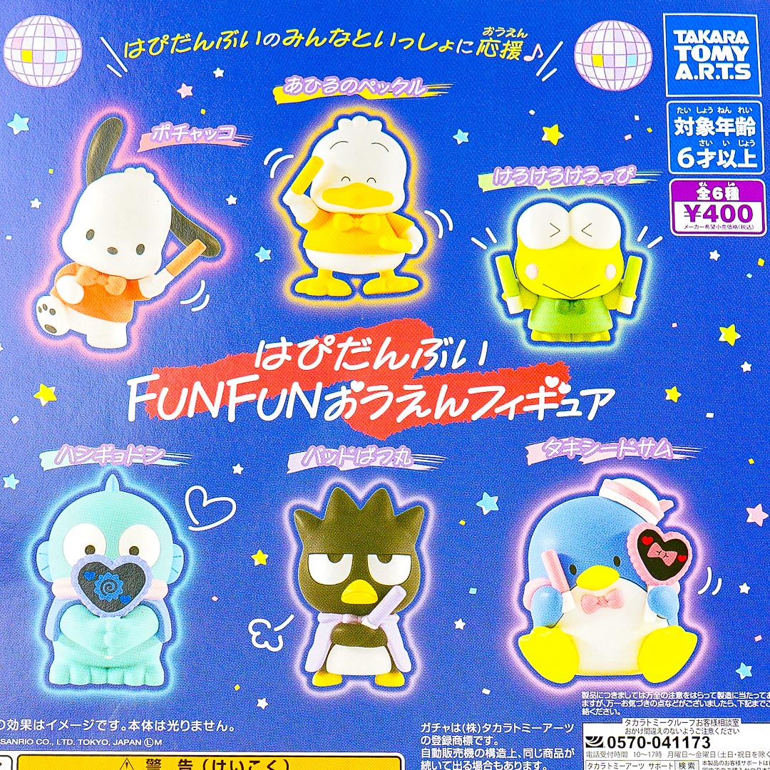 Have fun collecting this super cute figure from Sanrio! It features the Hapidanbui characters holding light sticks to cheer for their idols. You can collect all six designs from this Fun Fun series!