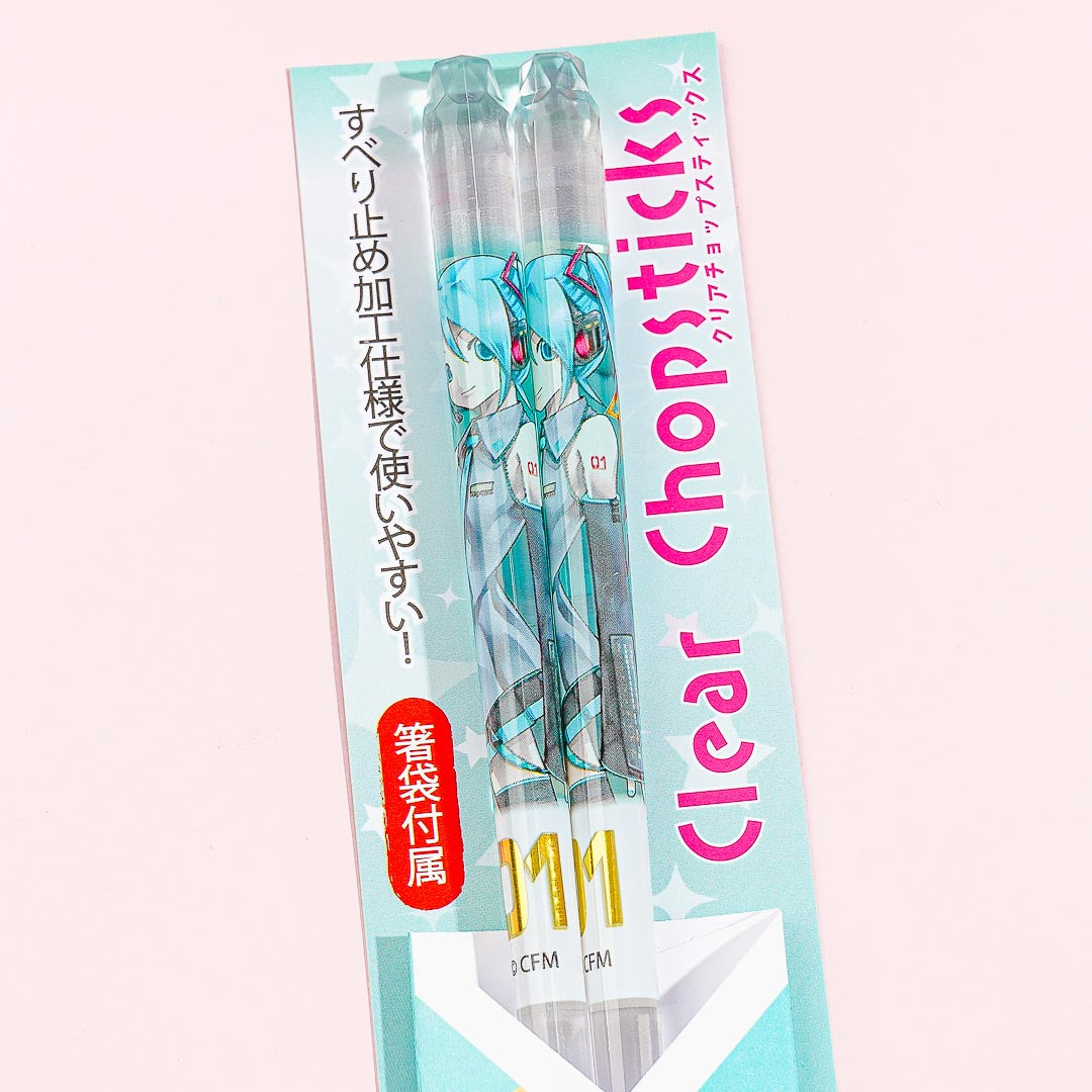 Eat your favorite meals using this super kawaii set of clear chopsticks. It features prints of Vocaloid Hatsune Miku from Project SEKAI! Don't forget to bring it along with your bento box.