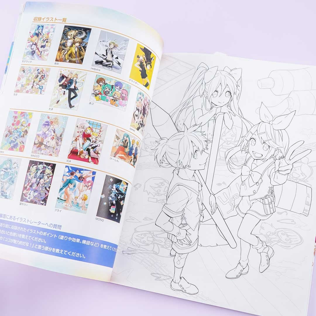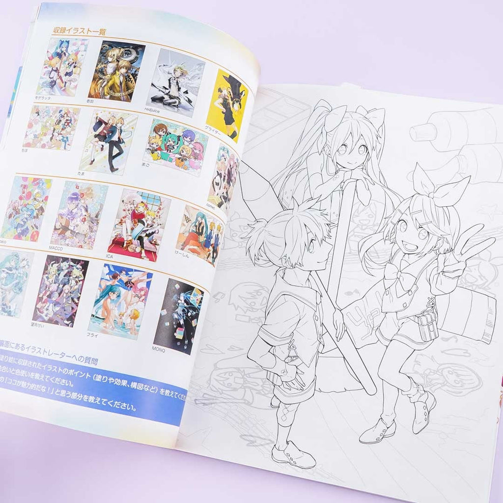 • A kawaii coloring book illustrated with Hatsune Miku, Kagamine Rin, and Kagamine Len