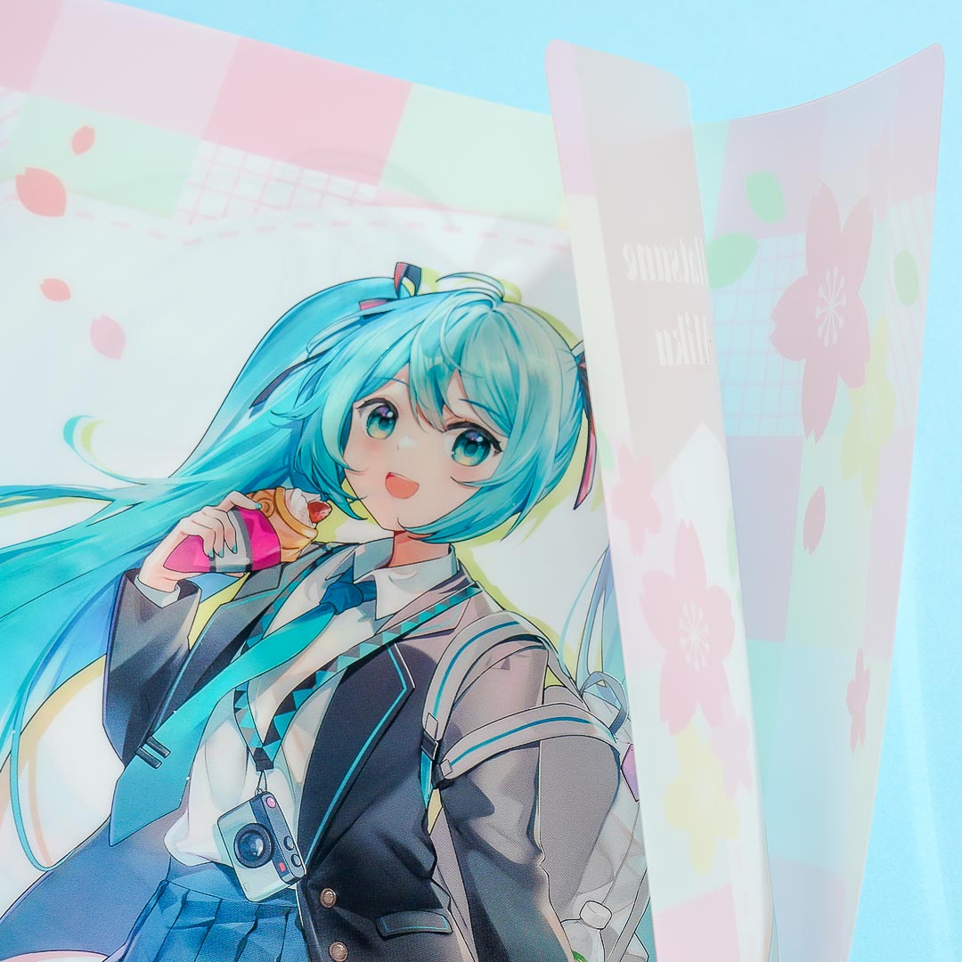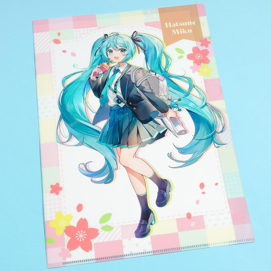 Organizing papers becomes easy-breezy with this super kawaii clear plastic folder. It showcases a print of Hatsune Miku from Project SEKAI taking a school trip! This folder comes from the Hatsune Miku Kyoto series.