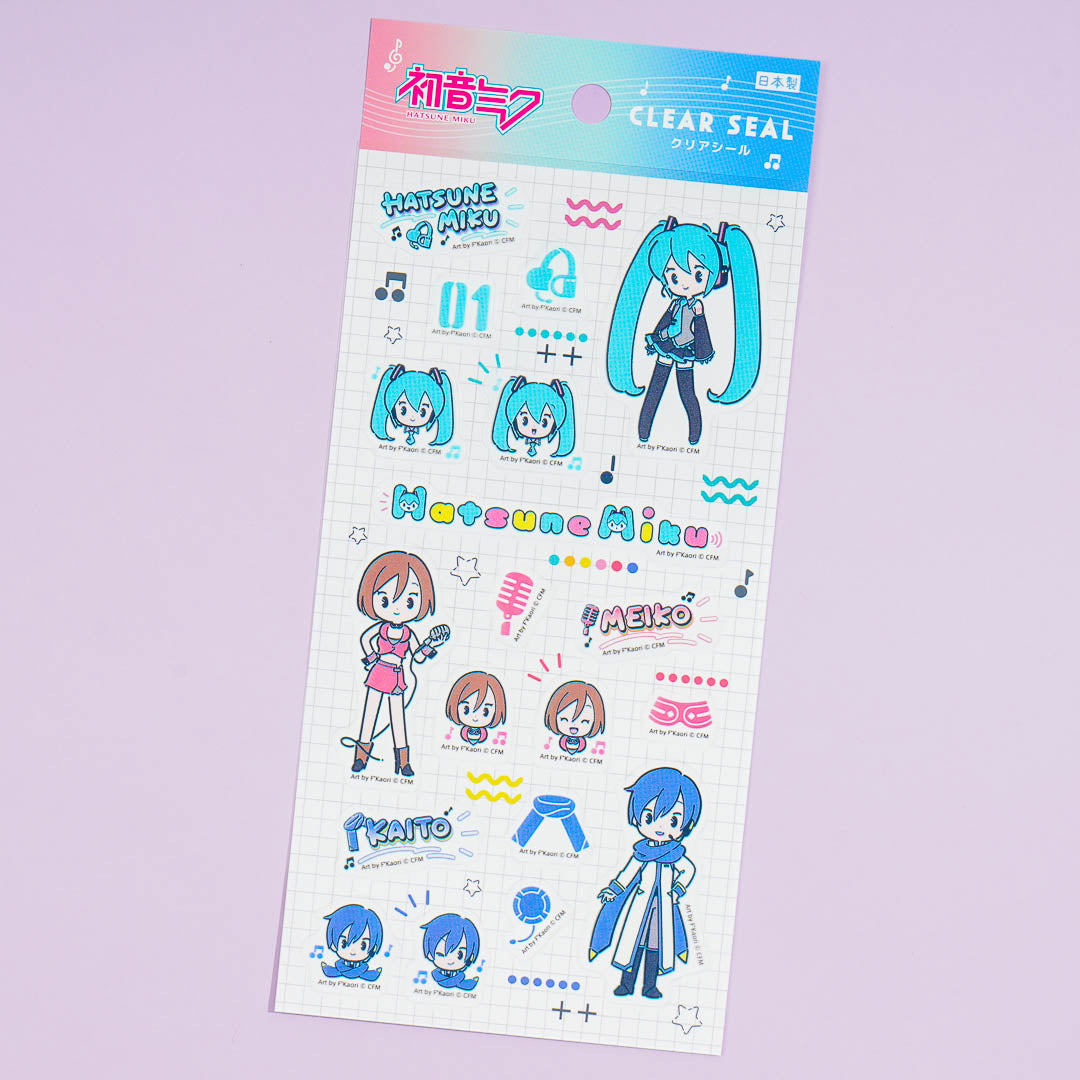 Decorate your journal with this super cute sheet of stickers. They feature prints of Hatsune Miku and her Vocaloid friend, Meiko! Add them to your sticker collection.