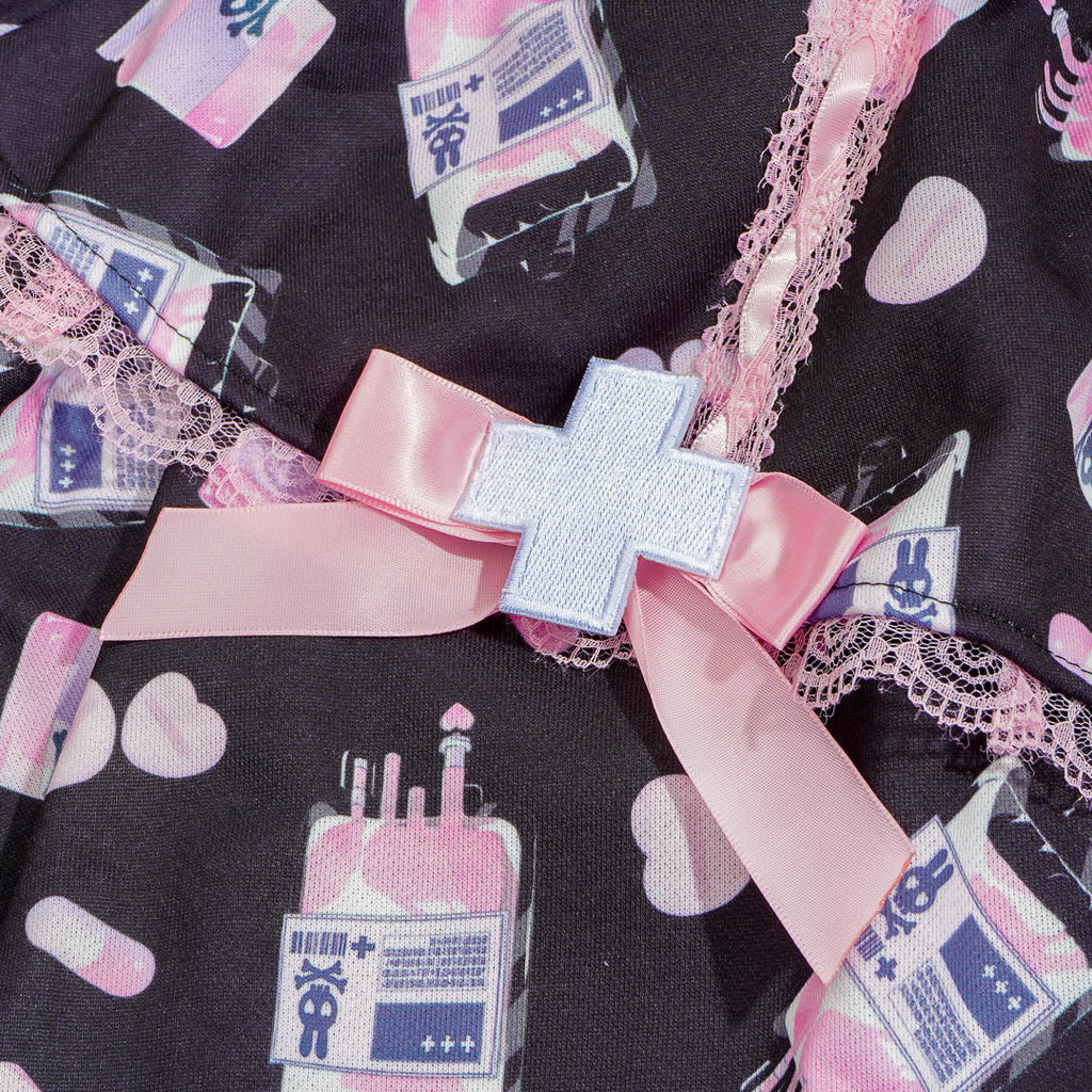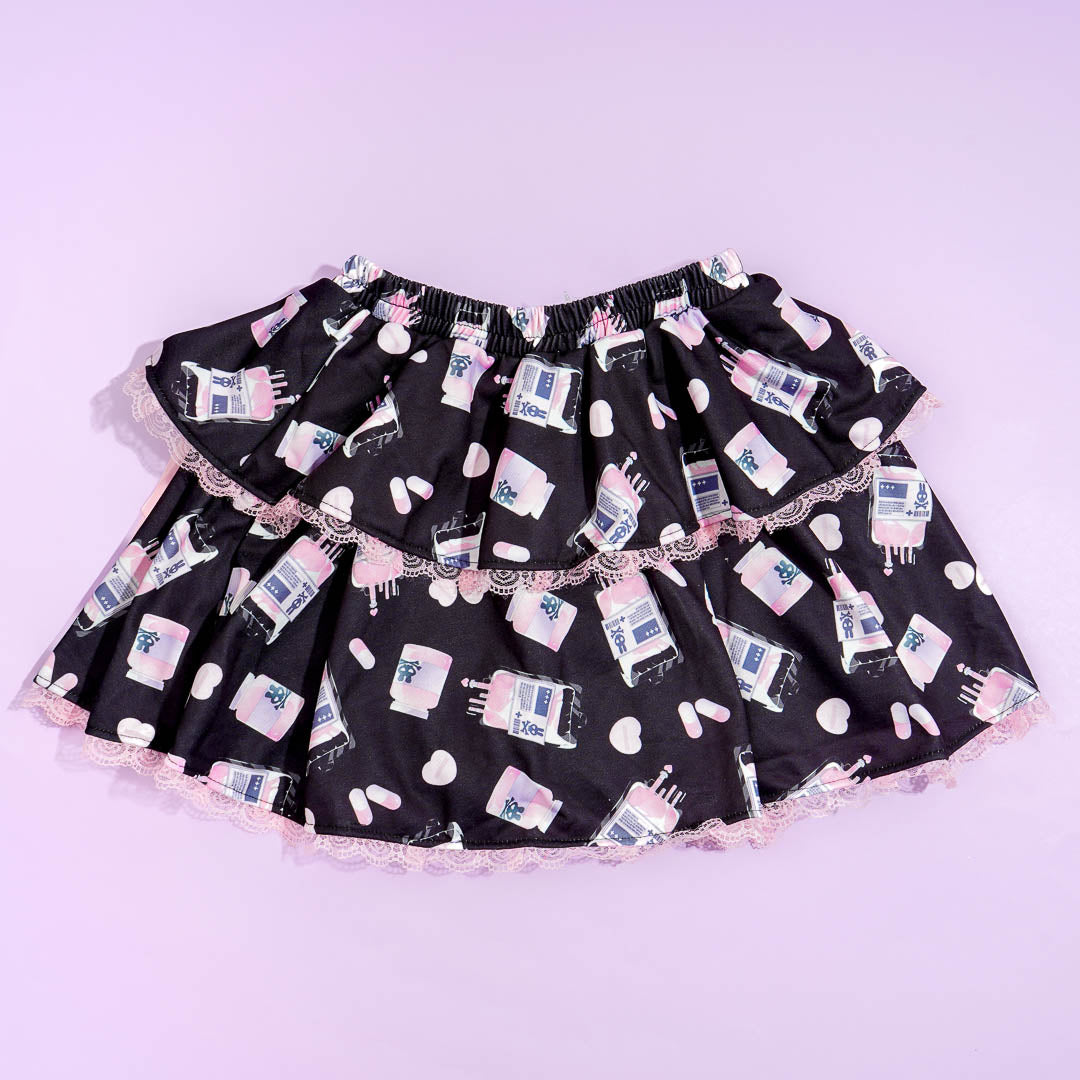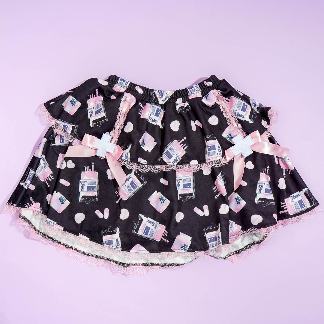 Add this super kawaii Lolita skirt to your wardrobe. It comes from ACDC RAG's Twin Nurses Pastel collection. ACDC RAG is a Japanese fashion brand known for its unique take on Harajuku street style. This knee-length skirt has charming frills and ribbons.