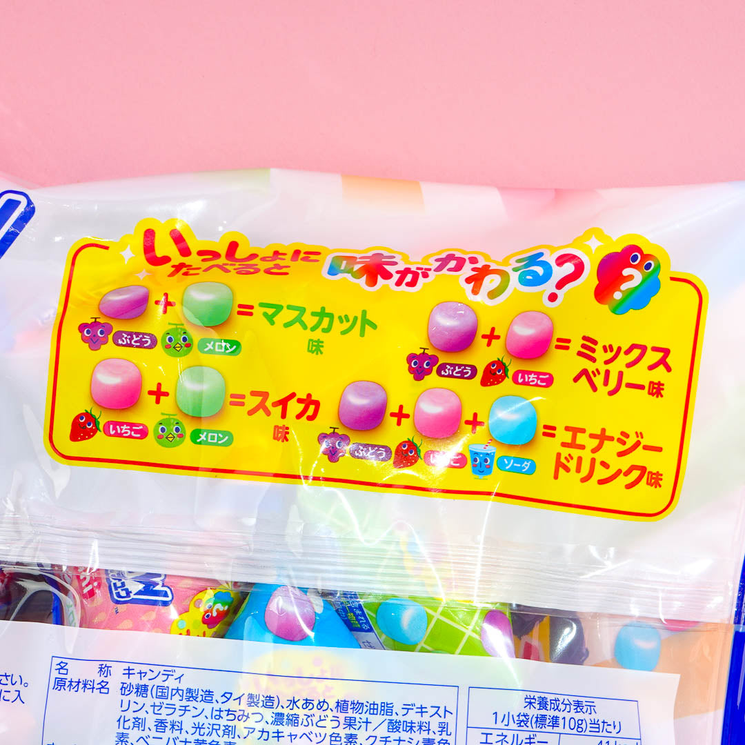 Share this bag of refreshing chewy candies with your friends! They're smaller than the regular Hi-Chew variants and come in four fruity flavors: grape, strawberry, melon, and soda.