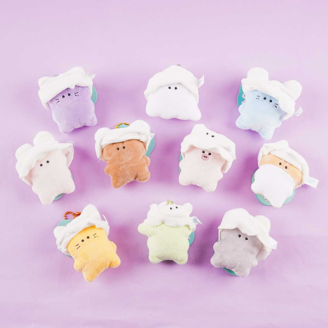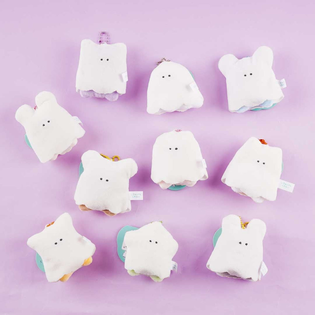 This kawaii plushie charm is wearing a cute ghost poncho. It comes with a detachable ball chain so you can hang it easily on your favorite bag. Surprise yourself with a random design when you can order.