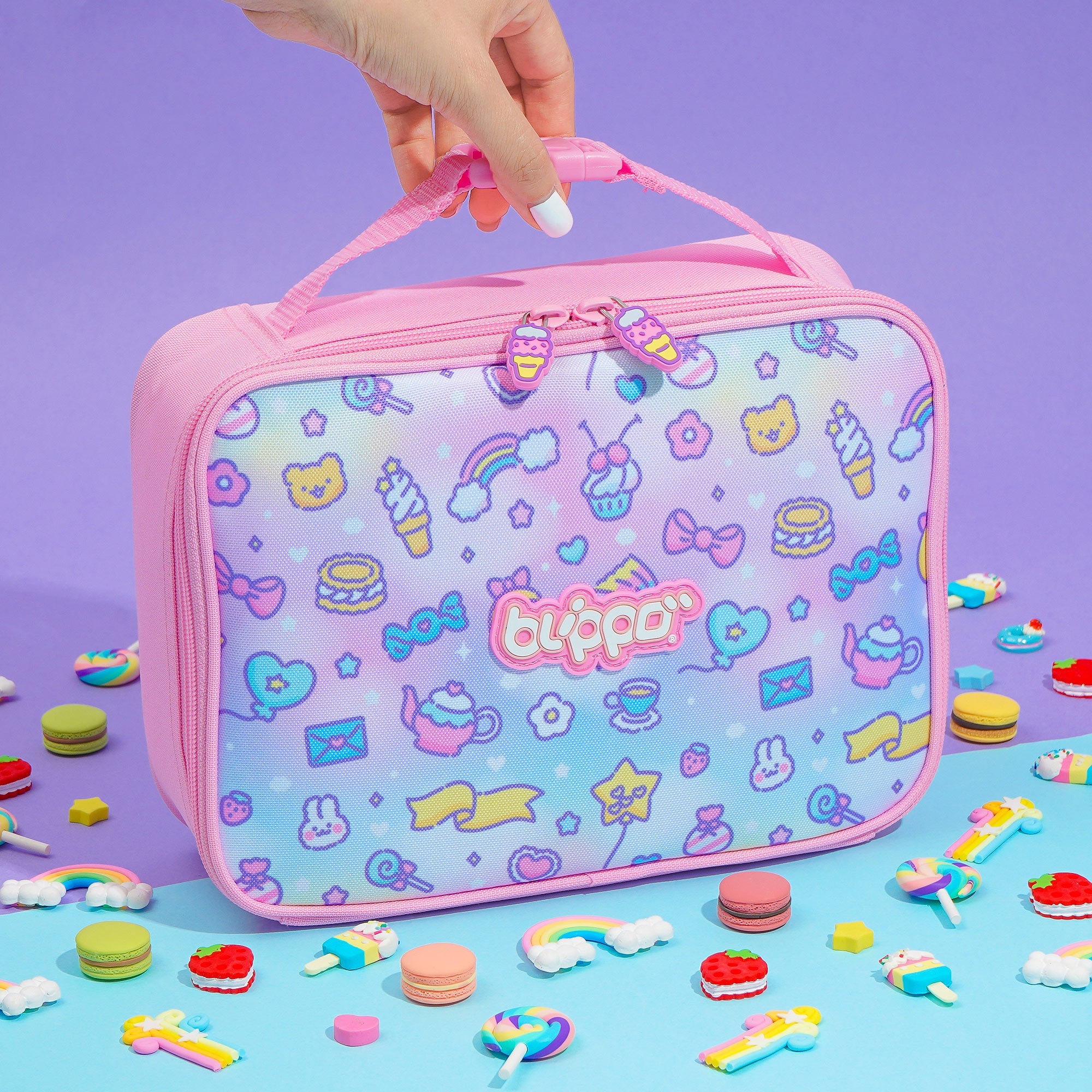 Write your name on the internal name label of this pink lunch box. You'll find your lunch box if you get separated from it! Discover the birthplace of kawaii cuteness with our Harajuku collection! Perfect for adding a splash of Blippo style!