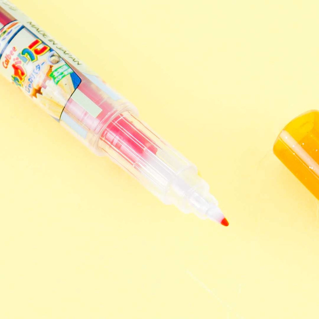 Jot down important reminders on your planner using this kawaii double-tip pen! It has a striped body with cute illustrations of a giraffe and a cup of Calbee Jagariko Tarako Butter. This super cute marker has both broad and fine tips and a buttery scent.