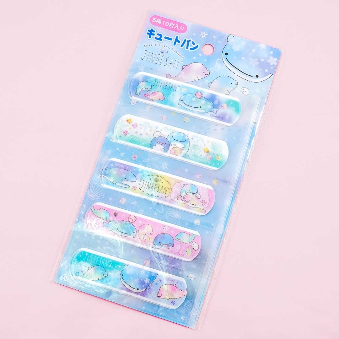 This kawaii set of bandages have five various prints featuring Jinbesan and friends playing in the night sky filled with stars! Use these sparkly bandages to cover and protect your wounds.