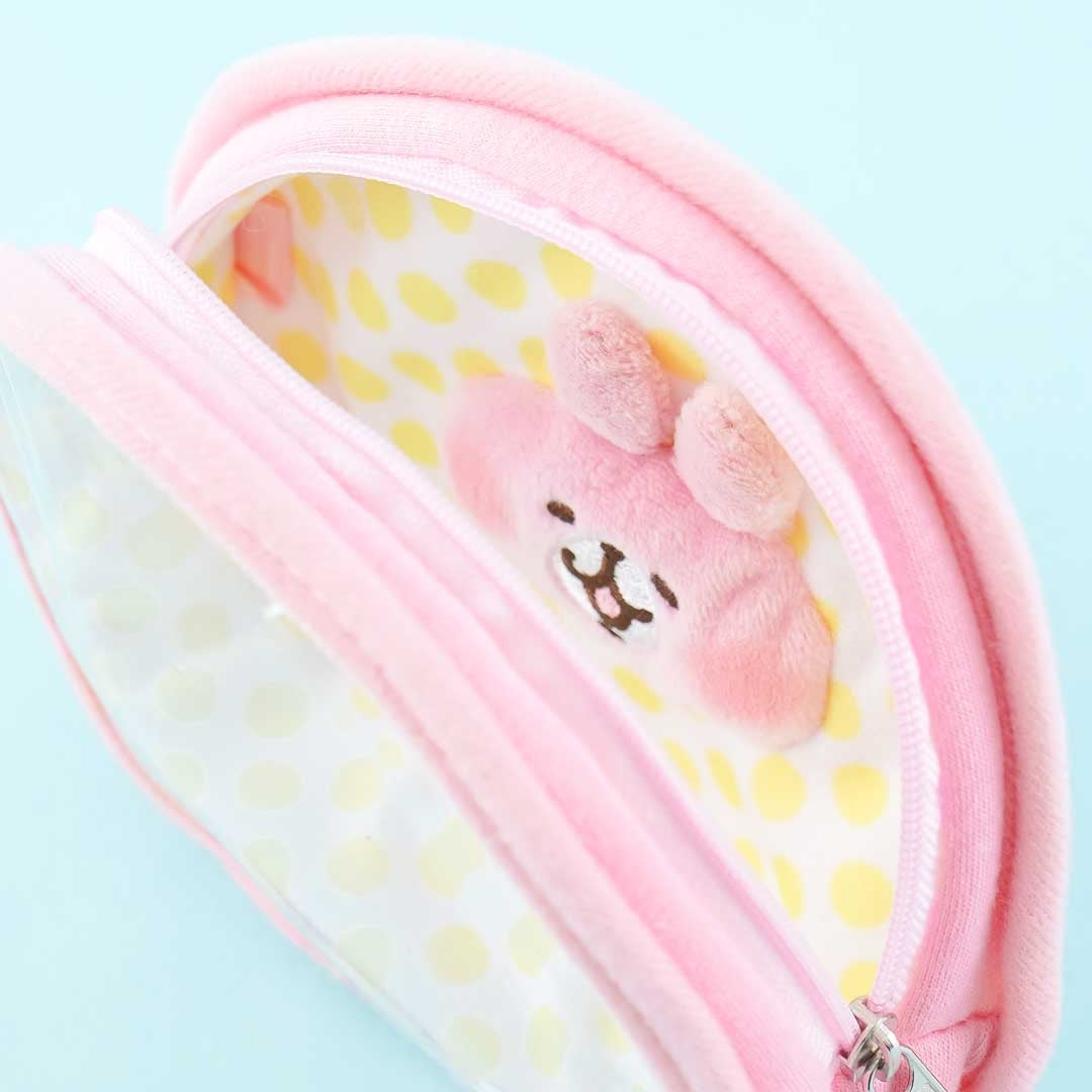 This cute pouch showcases Kanahei characters with happy smiles on their faces! It has a clear pocket window and a zipper closure. Use it to store small trinkets! Remember to wipe it gently with a dry cloth if it gets dirty. You are not supposed to wash this pouch with water.
