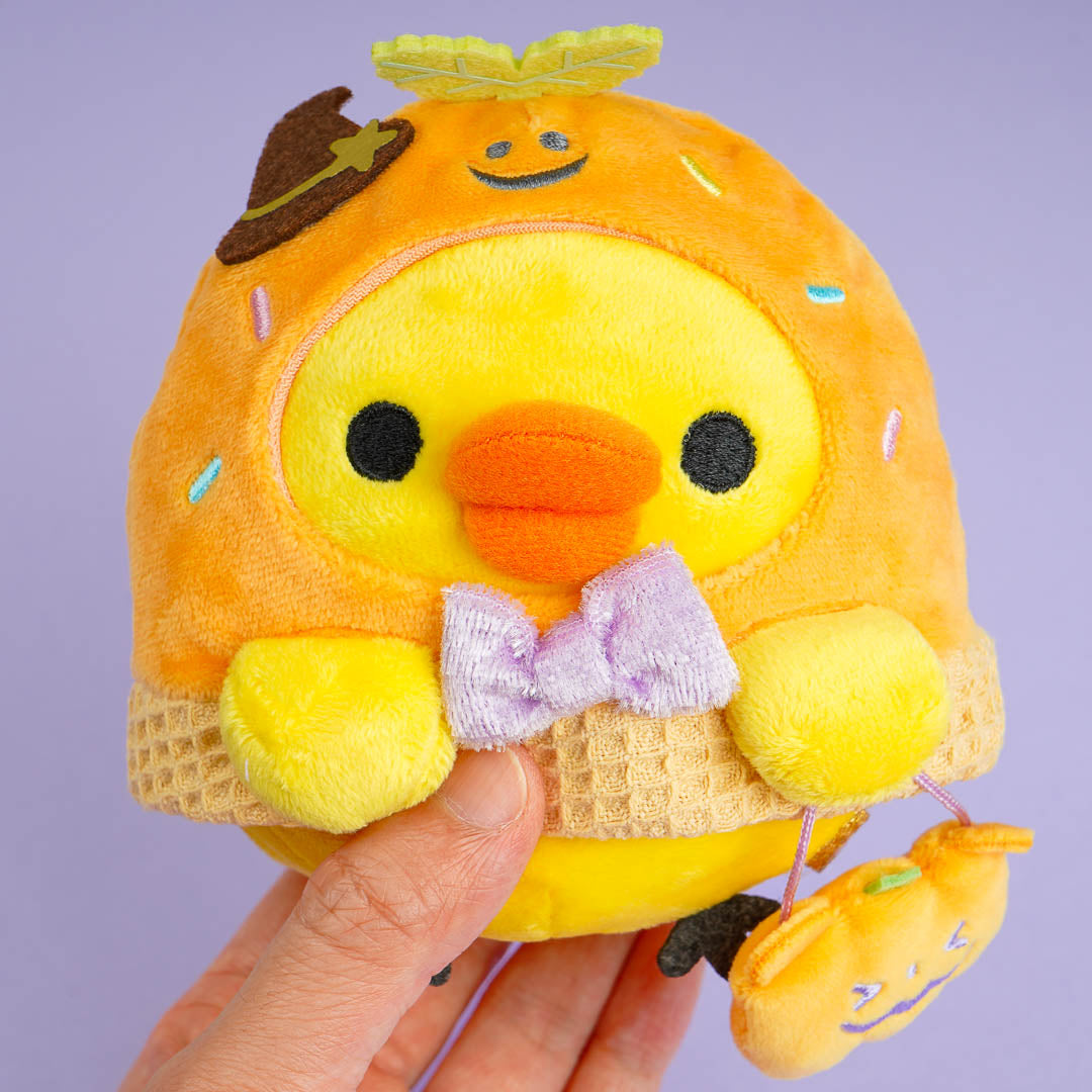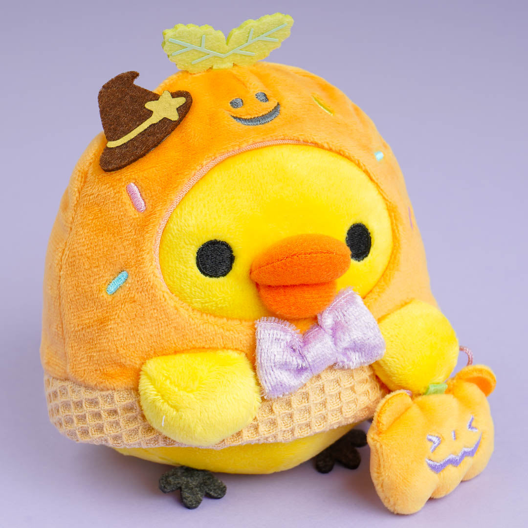 Adorably cute, nice addition to my collection of Kiirotiori plushes. Loved his cute costume and the little pumpkin bag he had.