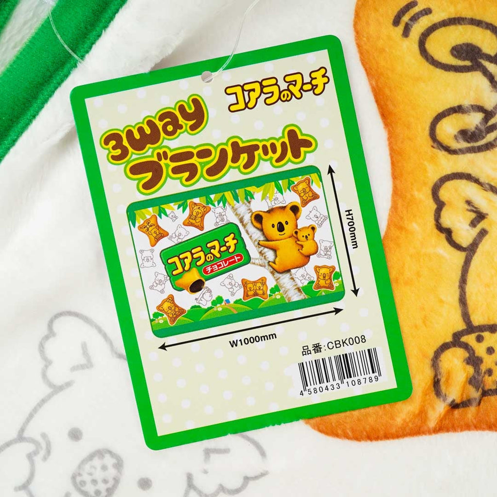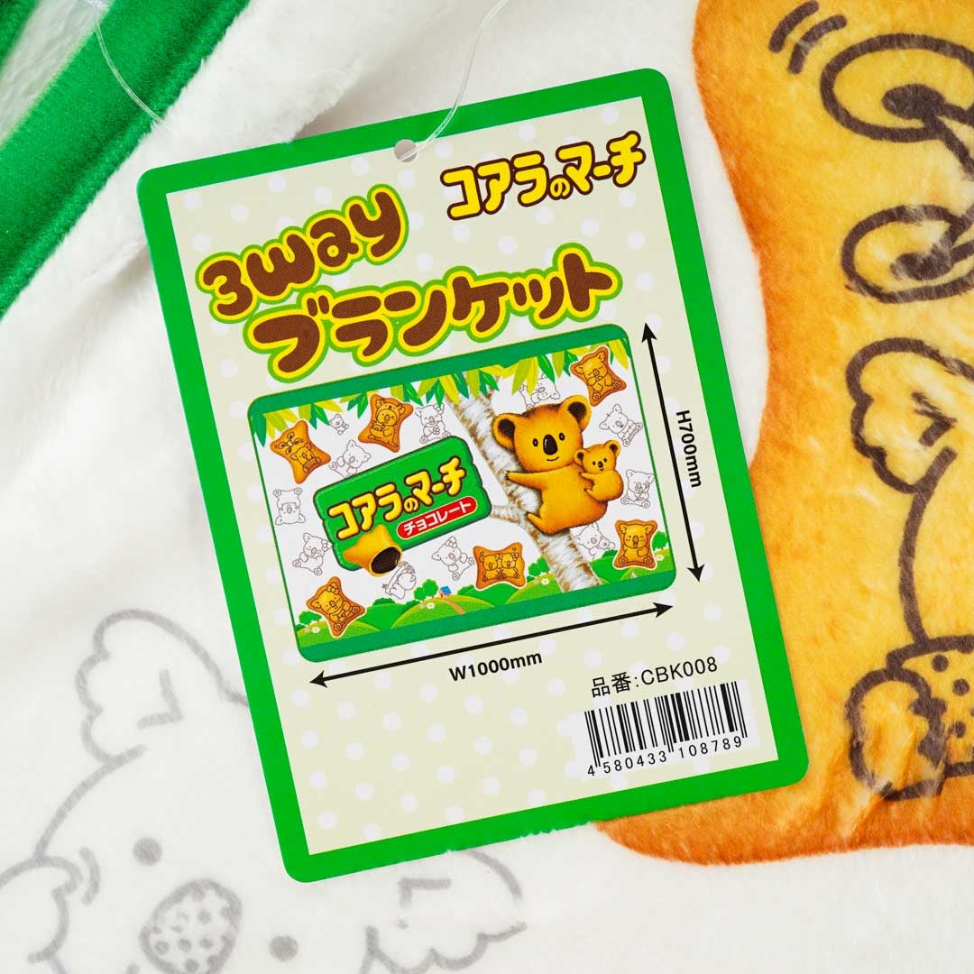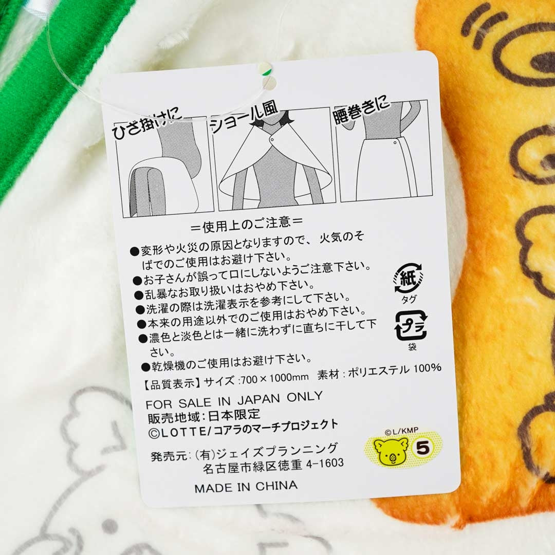 Snuggle under this fluffy blanket featuring prints of Koala's March snacks! You can hang it on your shoulder or wrap it around your waist with the snap-on buttons.
