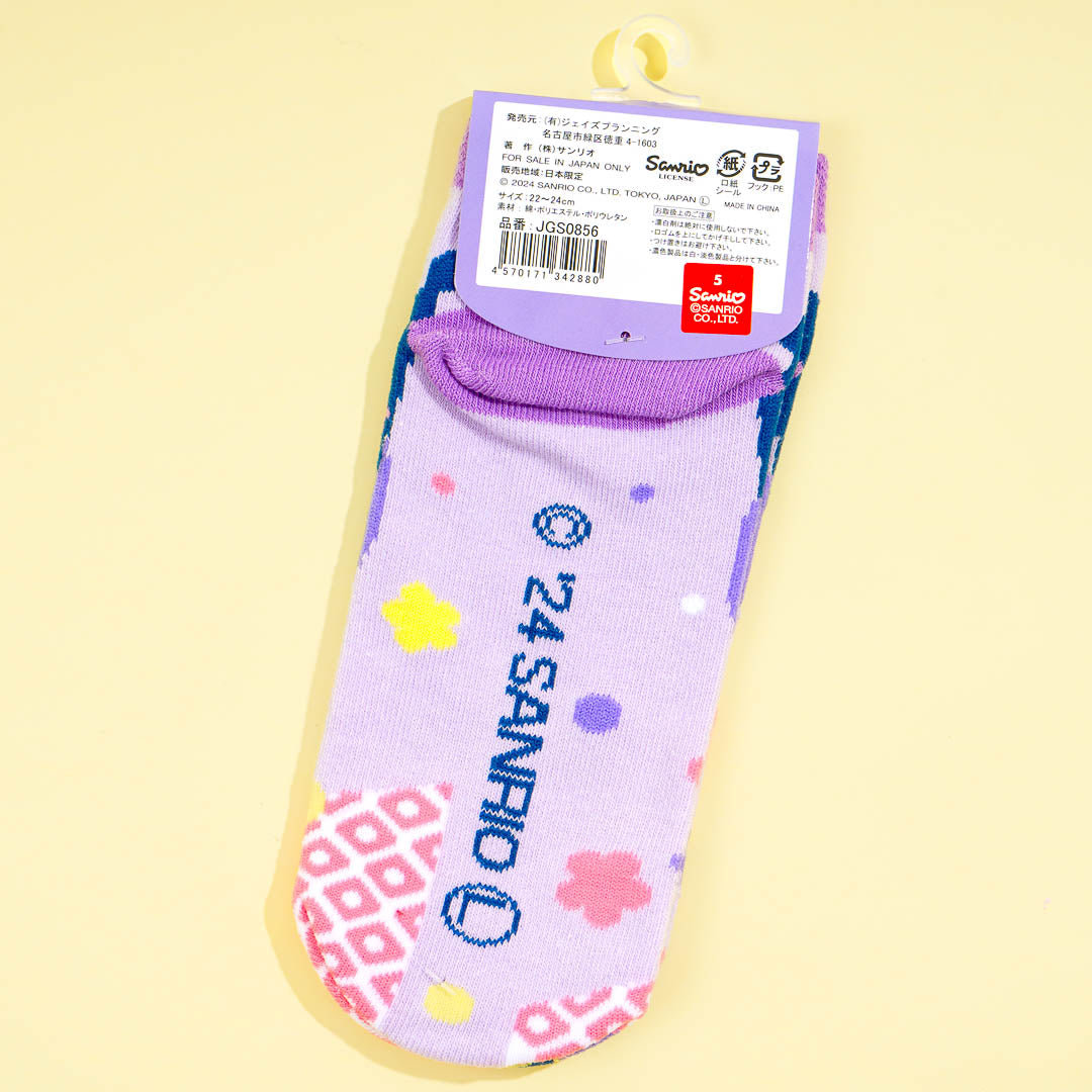 Put on this super kawaii pair of socks before heading off to bed! These comfy socks have prints of Kuromi's face and a daruma doll that looks like her.