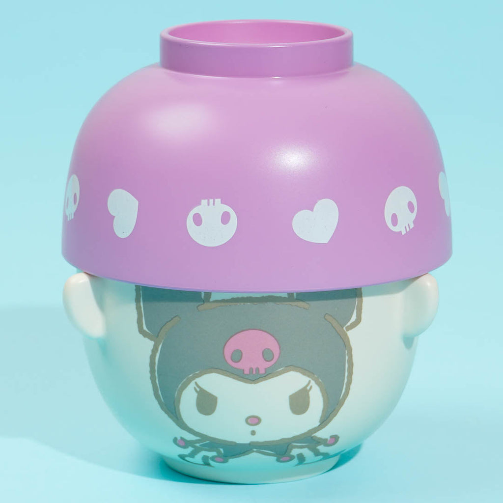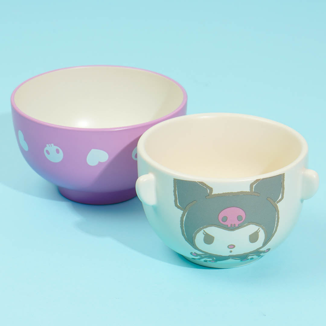 This super cute bowl set is perfect for serving rice and miso soup! The rice bowl features a watercolor-style illustration of Kuromi, while the soup bowl is decorated with prints of hearts and skulls. Use it to add a touch of cuteness to your mealtime!