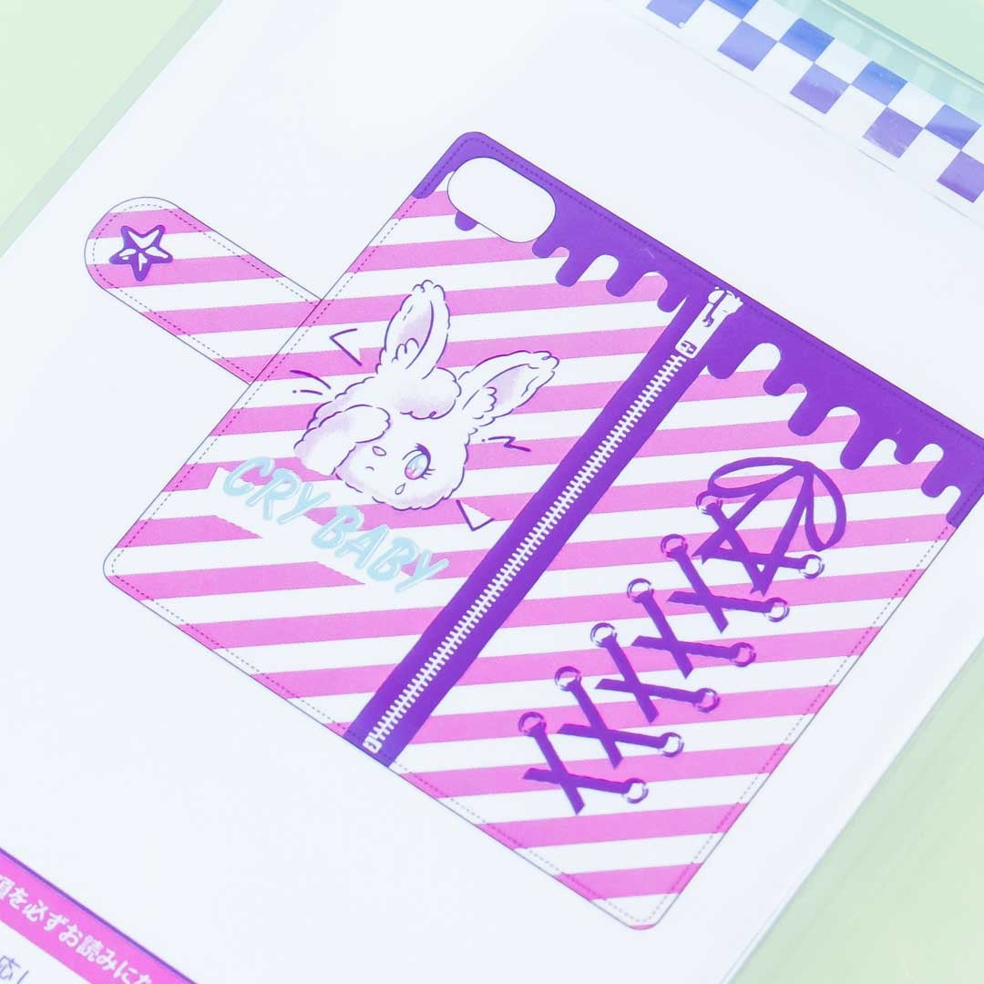Keep your smartphone secured with this cute faux leather flip case with a magnetic clasp! It features illustrations of a crying rabbit and a shoelace. This Listen Look phone case fits iPhone 6, 6s, 7, and 8.
