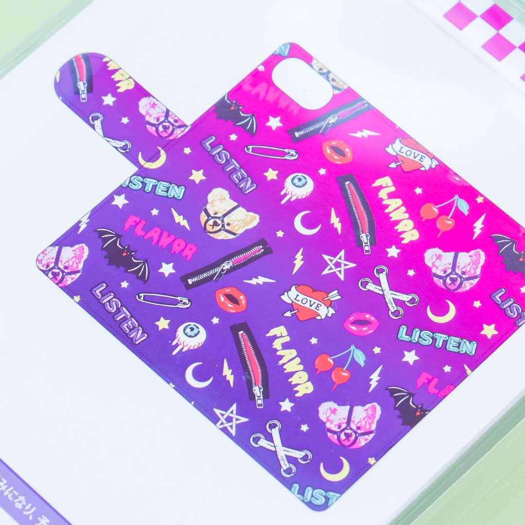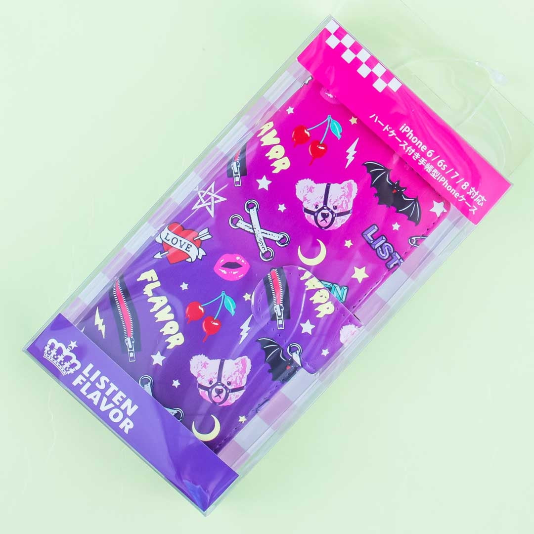 Protect your smartphone with this kawaii faux leather flip case with a magnetic clasp! It features goth-themed bears, cherries, and bats on the cover. This Listen Flavor phone case fits iPhone 6, 6s, 7, and 8.