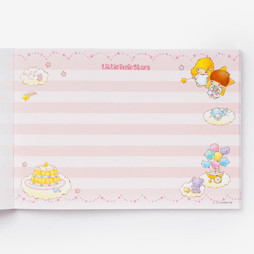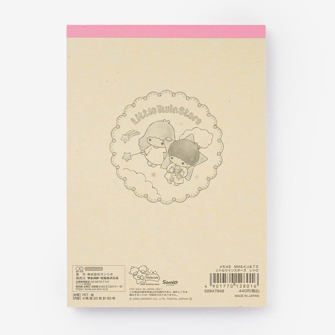 This super kawaii memo pad is illustrated with retro prints of the Little Twin Stars. Use it to write important notes and reminders for school!