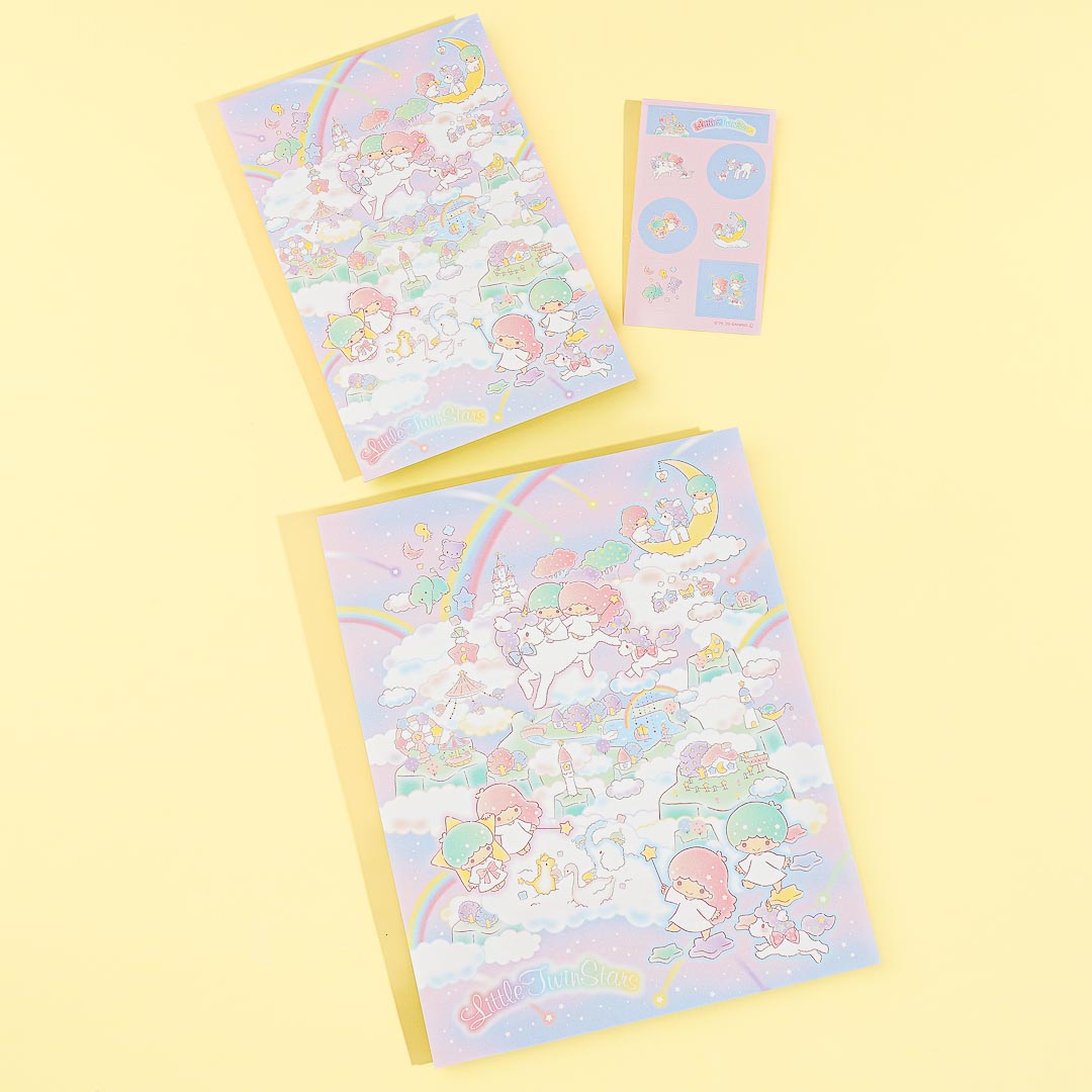 This kawaii set is decorated with super cute illustrations of the Little Twin Stars exploring the wonderful unicorn kingdom! Use the sheets and envelopes to create handwritten party invites for your friends and family. The set also comes with matching stickers to seal your letters!