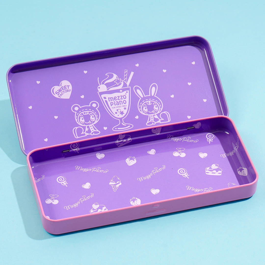Store your pencils in this retro-style pencil case made of tin material! It showcases prints of cute characters from the Japanese brand Mezzo Piano. This case is flat without an inner tray so it won't take up much space in your bag!