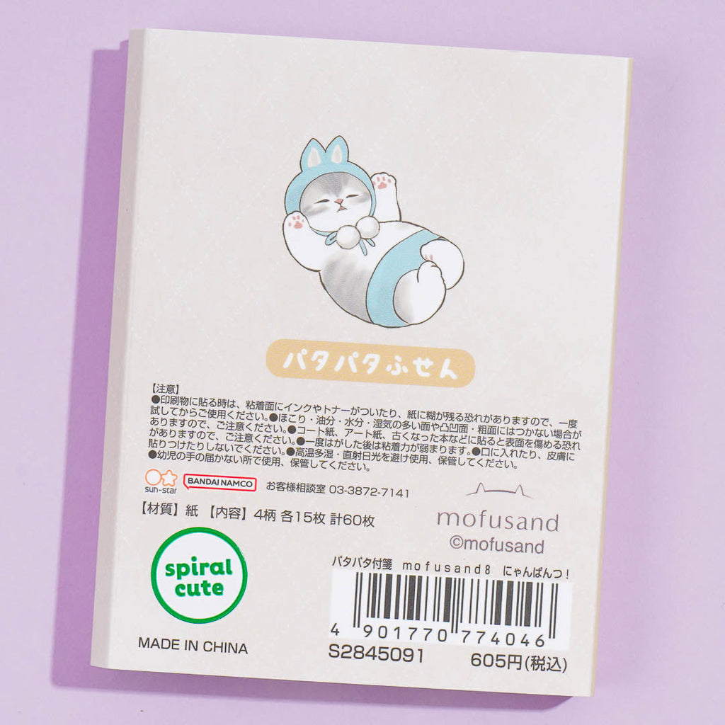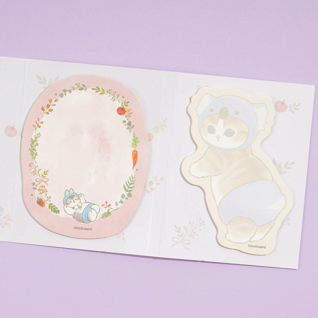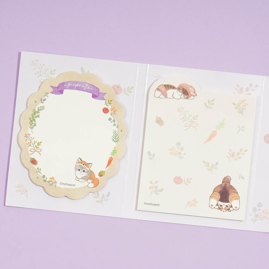 Keep track of important things to do by writing reminders on this kawaii set of sticky notes. Each die-cut sticky notes pad showcases prints of Mofusand wearing pants and headgear! The set has four pads all placed in one flip book-style package.