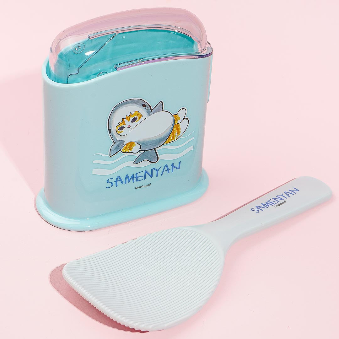 Add this super cute rice scoop and case to your kitchen! The set has a special surface treatment that prevents rice from sticking and is decorated with a kawaii illustration of Shark Nyan from Mofusand.
