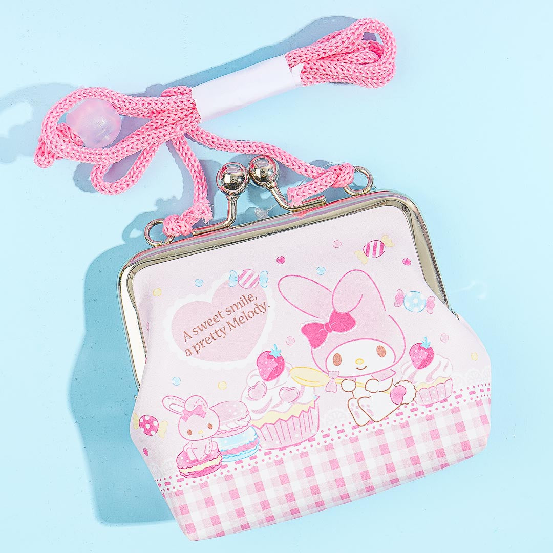 This super cute coin purse is illustrated with Melody having a cupcake party with her friends. Use it to keep your loose change! It has a clasp closure and a string strap that you can use to bring it around.