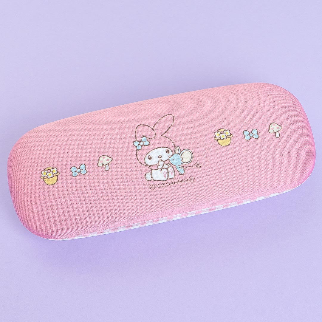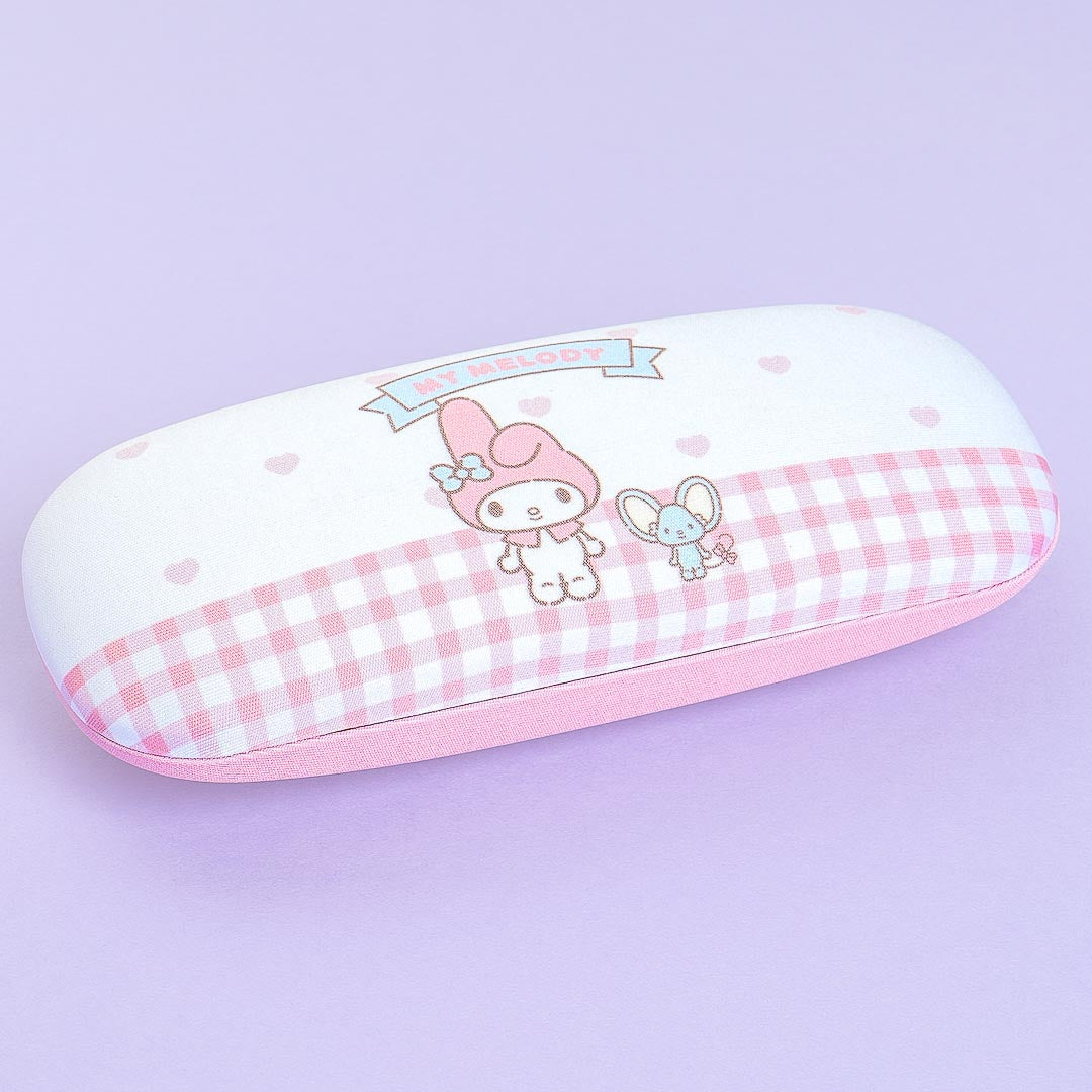 This gingham-printed hard case will keep your eyeglasses safe! It showcases a back-to-back design with cute prints of My Melody and her friend Flat. It comes with a cloth to keep your specs clean and smudge-free!