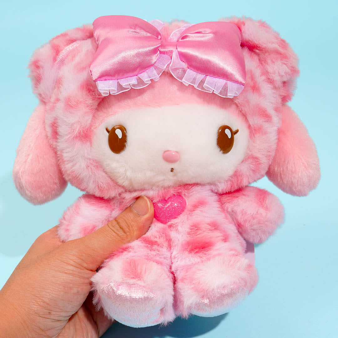 Have fun dressing up with this super kawaii My Melody plushie. This cutie from Sanrio's Gyaru Kuma series is dressed up as a leopard bear! You can't remove the hoodie or the heart parts on this medium-sized stuffed toy's chest.