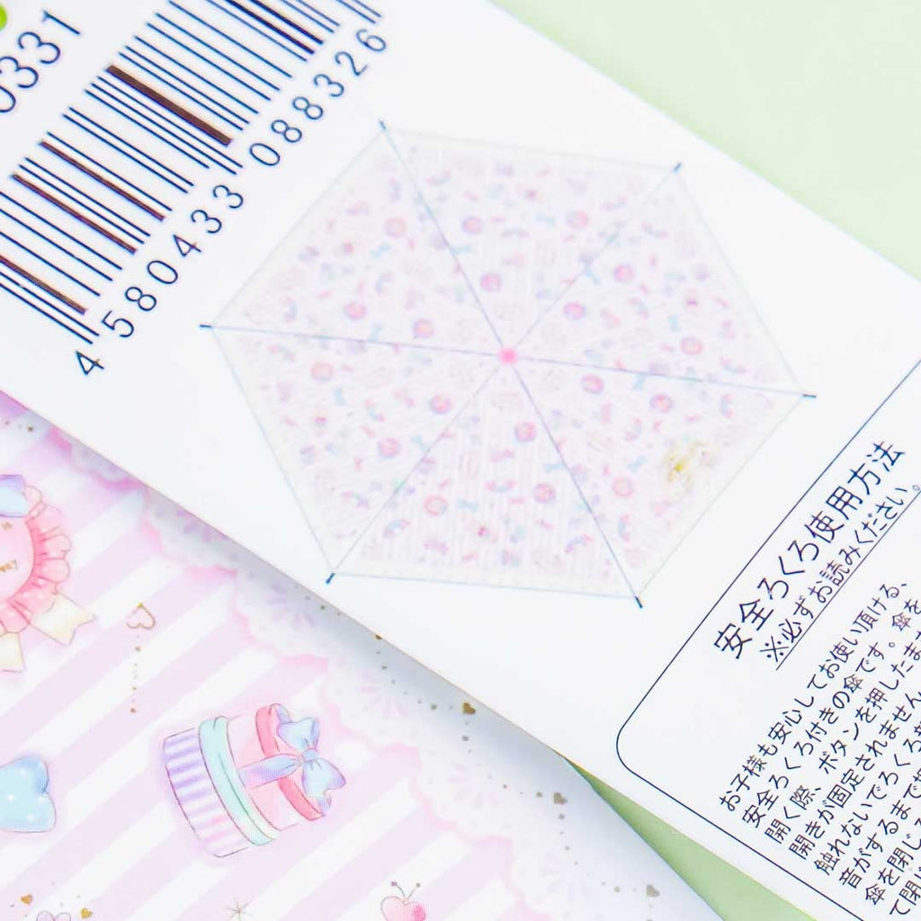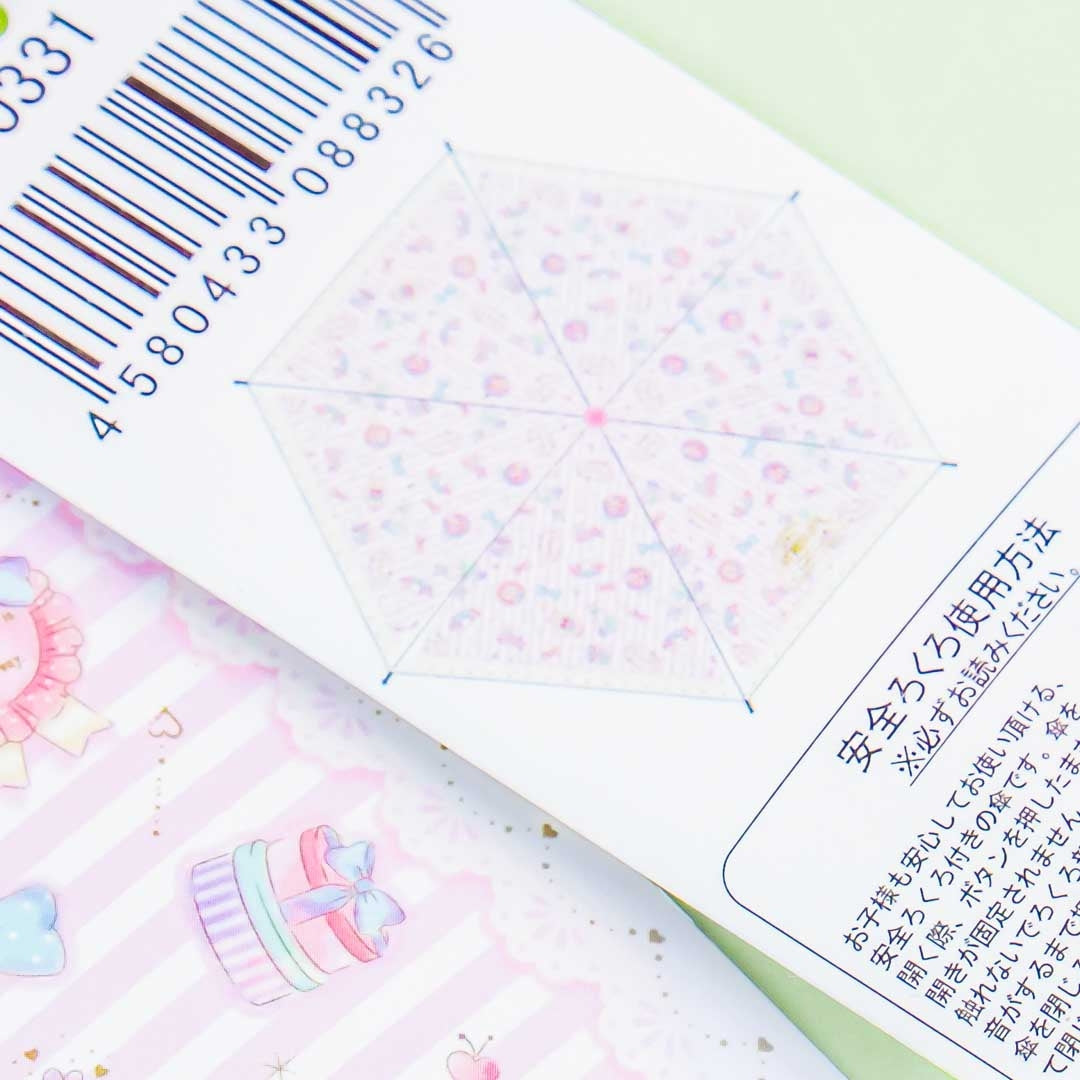 Use this kawaii portable umbrella whether it’s sunny or rainy! This cute parasol features My Melody with My Sweet Piano and lots of pretty bows. It comes with a curved handle and you can secure it using the button closure. Keep this inside the provided carrying case when not in use.