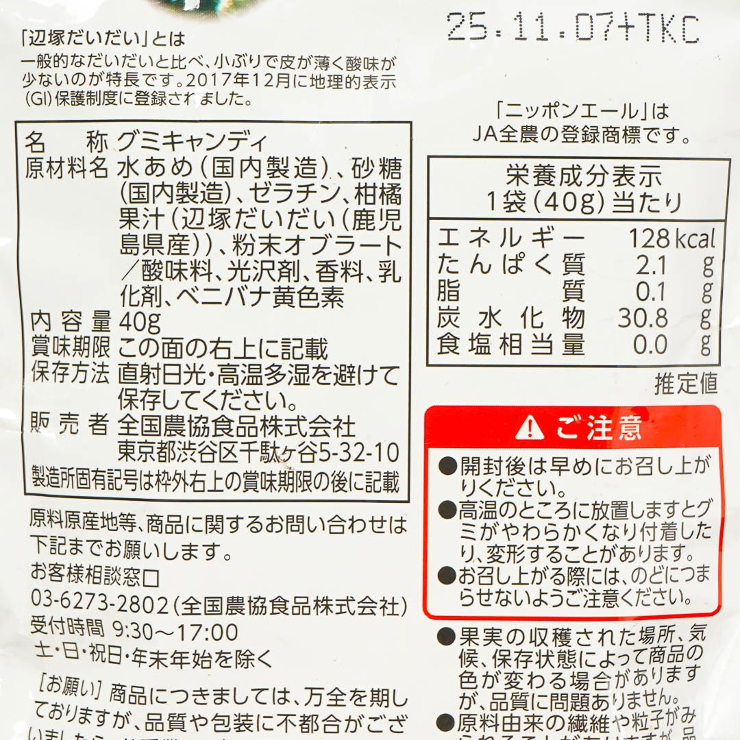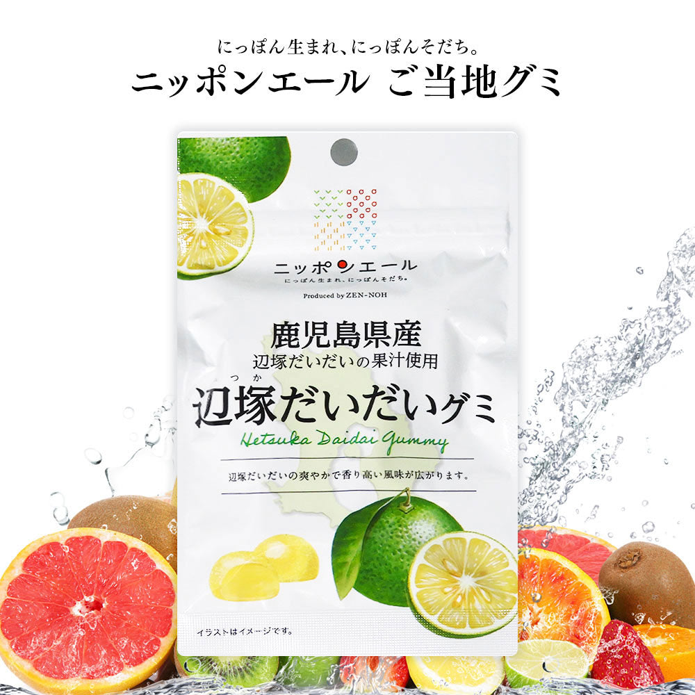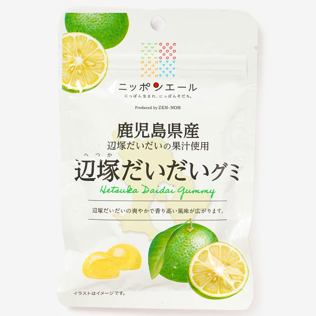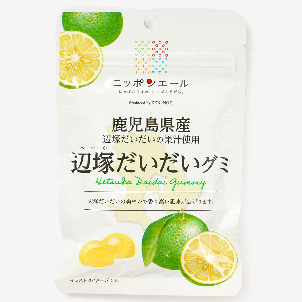 These chewy gummies are made with the juice of Hetsuka daidai, a fragrant citrus fruit grown in Kagoshima, Japan. Each piece has a refreshing, slightly tart flavor with a bright citrus aroma that captures the taste of real Japanese daidai. Munch on this gummy candy for a refreshing treat!