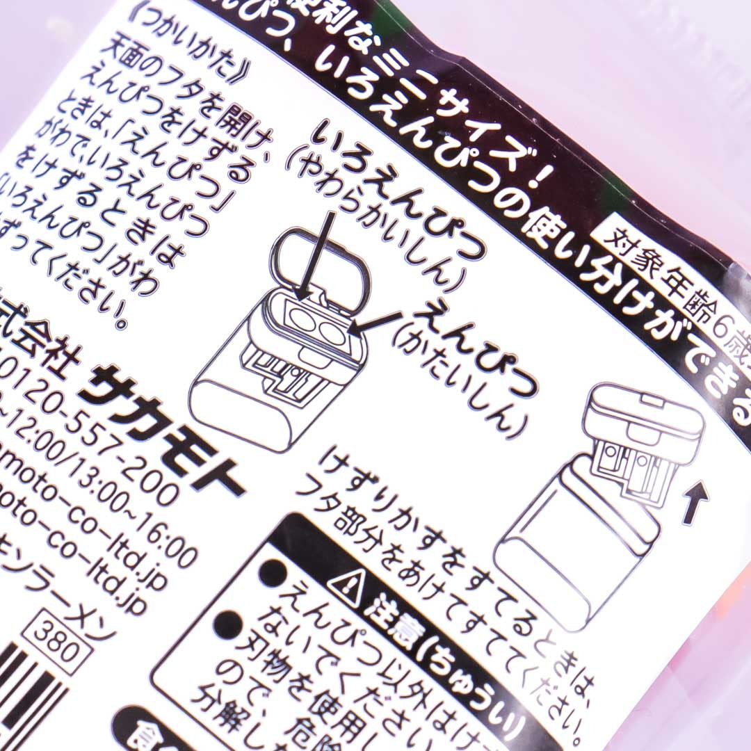 This super kawaii sharpener features prints of Nissin Chikin Ramen's mascot! It has two slots that you can use to sharpen your pencils. Make sure to close this sharpener with its snap-on lid.