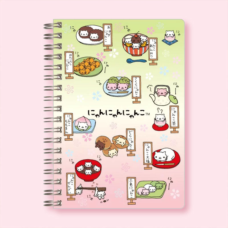 Have fun writing your notes in this super cute notebook! It features Nyan Nyan Nyanko, the cute little cats from San-X, looking like traditional Japanese snacks. This B6 notebook is double-ringed and has 50 colored pages.