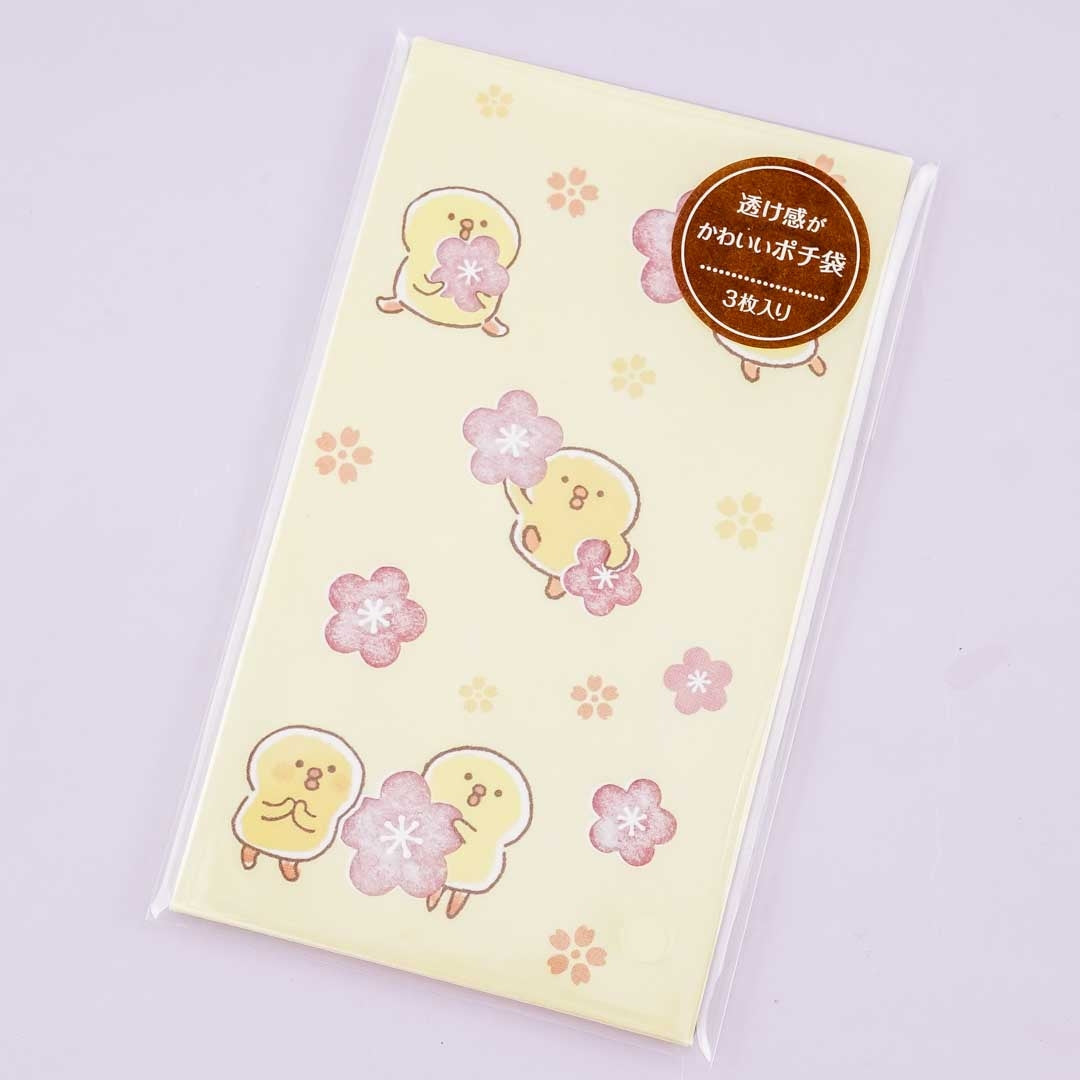 Use this kawaii set of small envelopes to send special messages to loved ones. Each one is covered in prints of Piyokomame characters playing with sakura flowers! These envelopes are made of "Melty Paper" with heat-processed parts that are translucent. You can also use these envelopes to give money during the Chinese New Year!