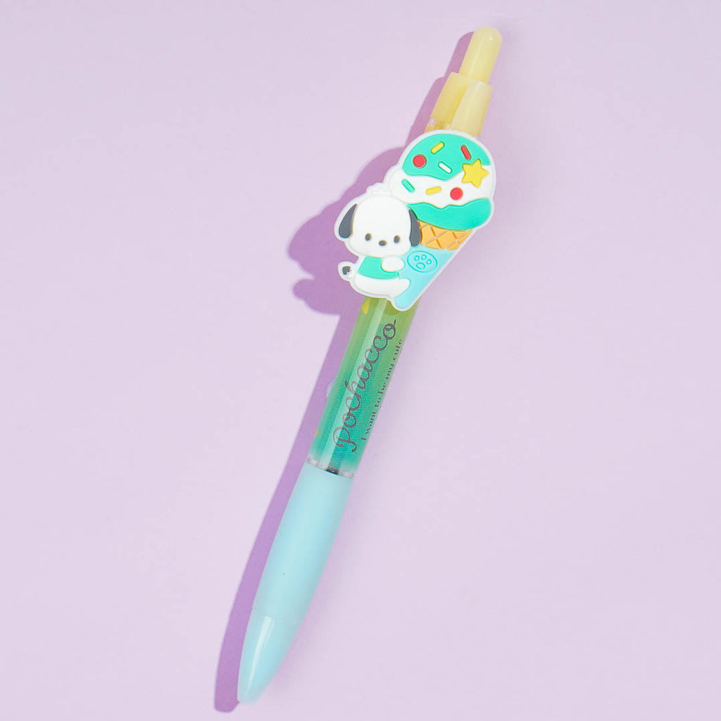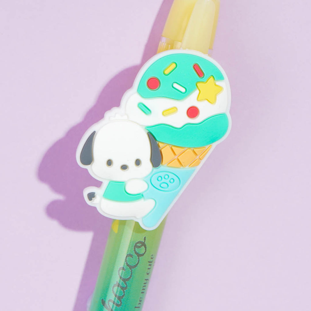 Conveniently write your school notes using this super cute retractable pen with a non-slip grip! It has a kawaii charm featuring Pochacco latching onto an ice cream cone.