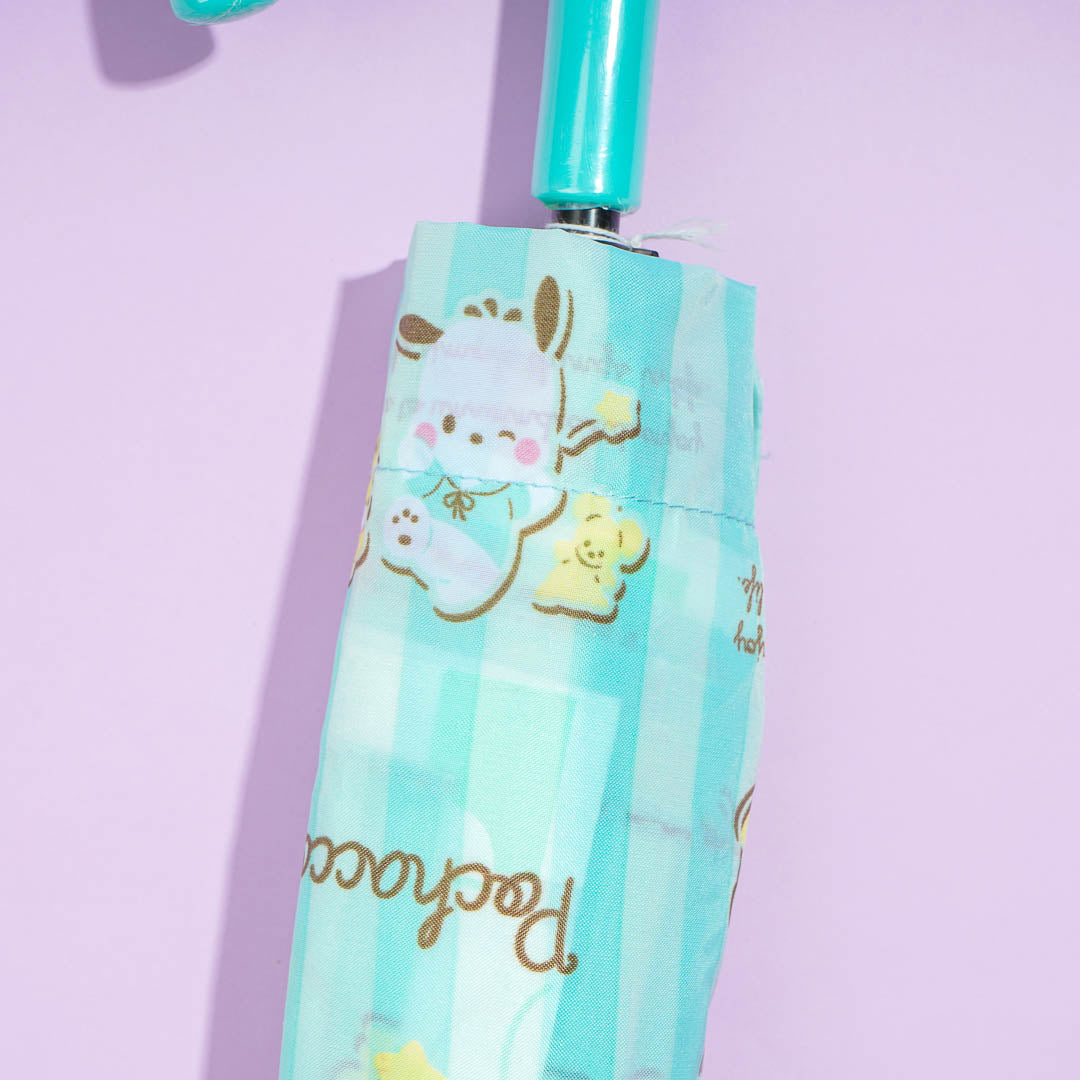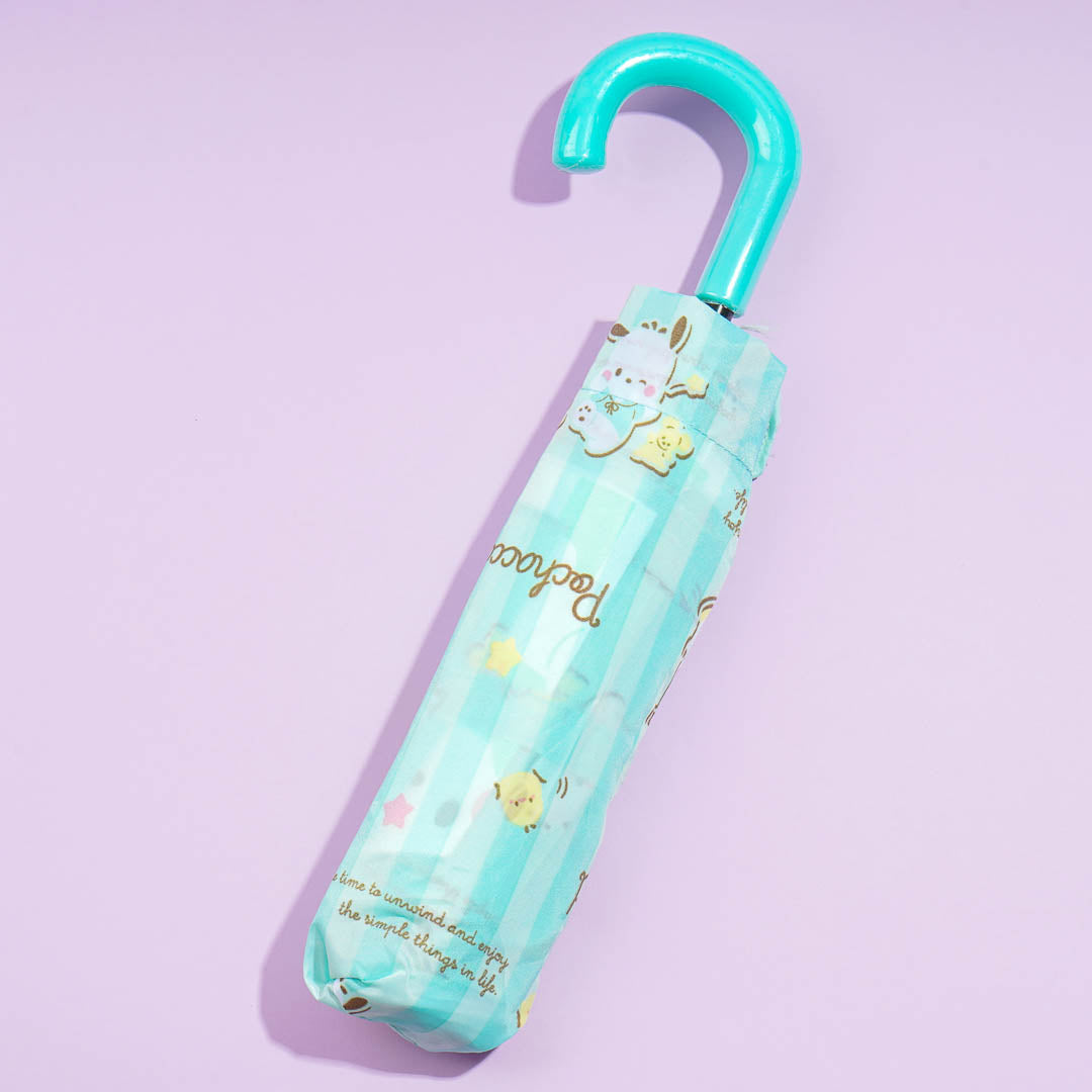 Always have this cute folding umbrella with you whenever you run errands outdoors! It features kawaii prints of Pochacco and lots of stripes. This handy umbrella also comes with a curved handle.