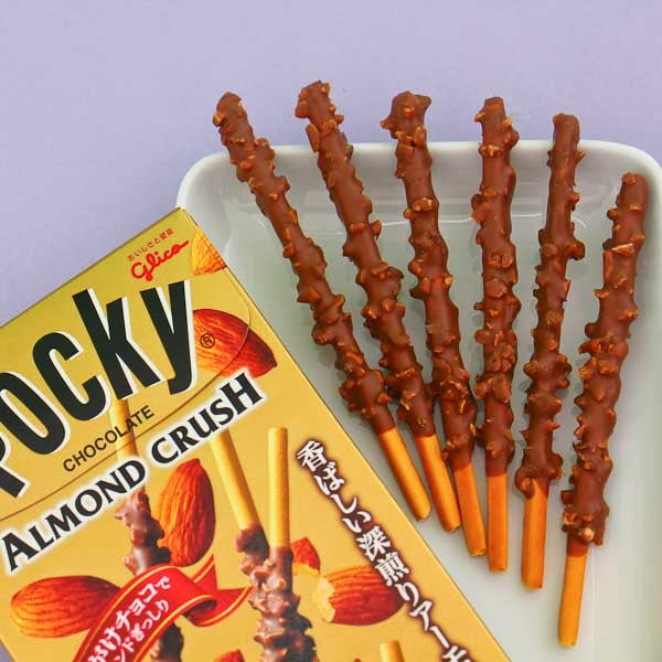 Pocky is the most popular and famous Japanese sweet snack, and for a reason! These biscuit sticks are covered with delicious crushed almonds and milk chocolate frosting. The end of the sticks has been left uncoated so you will not get your fingers sticky while eating them. The name "Pocky" is derived from the sound that this crispy snack makes when eaten. Pocky sticks come in a broad array of flavors, styles, and shapes. Sweet!
